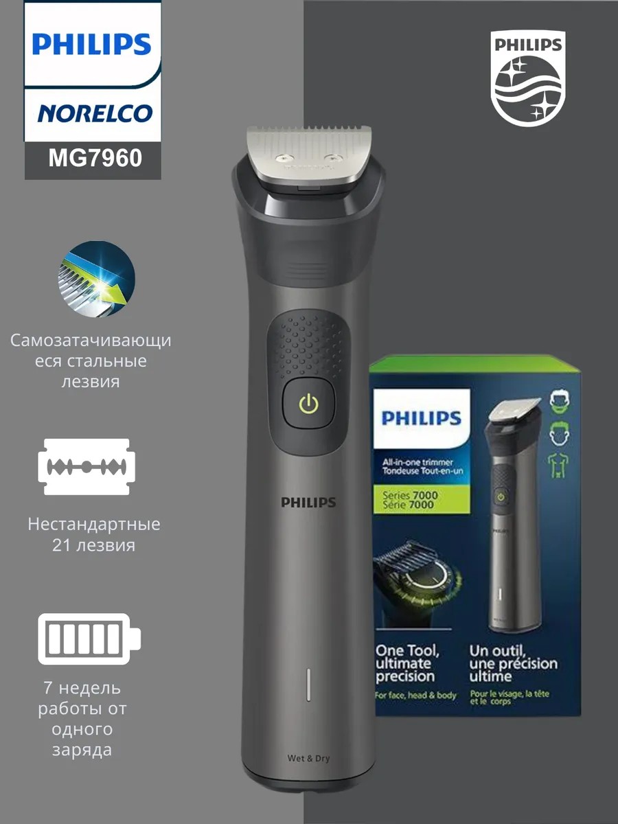 Philips Norelco Multigroom 7000 MG7960 с 21 насадками