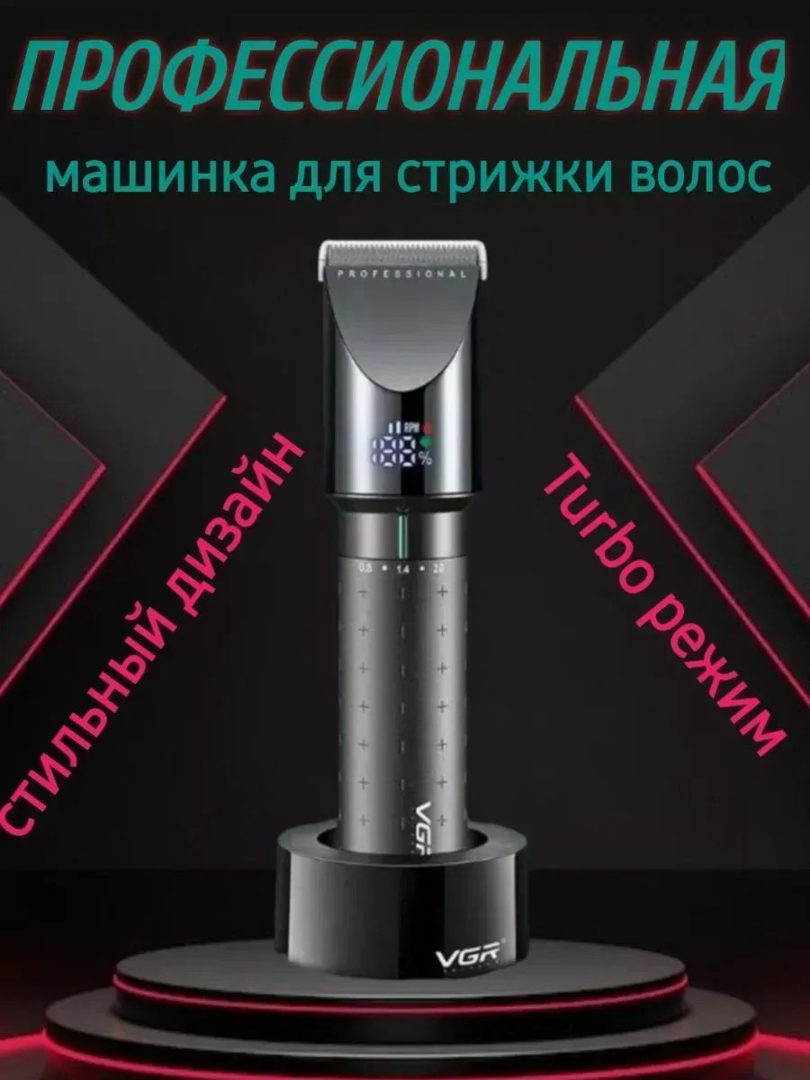 Беспроводная профессиональная машинка для стрижки волос VGR698 обладает мощным и при этом тихим мотором и удобным, эргономичным корпусом, материал которого не даёт машинке быстро нагреваться и скользить в руке, что делает ее отличным инструментом как для бытового применения, так и для работы в салоне. Отлично подойдёт для удаления нежелательных волос на лице теле и голове. Керамические лезвия, которые не нагреваются и не вызывают аллергических реакций и небольшой вес 230г обеспечивают комфорт при длительном бритье. На рукоятке электробритвы имеется переключатель, для настройки длины стрижки от 0.8 до 2 мм. А также в комплекте имеются 4 насадки: 3-12 мм. На LED дисплее находятся индикаторы оставшегося заряда бритвы, турборежима и смазывания. Последний загорается, информируя о необходимости смазки лезвий. При полностью заряженном аккумуляторе машинка способна работать до 200 минут. В комплекте находится стильная док-станция, на которой время полной зарядки составит 2,5 часа. Если вам нужно продолжать стричь, но батарея села, в комплекте есть USB-Type-C провод длиною в 1.4 метра. Машинка для стрижки отличный подарок мужу парню папе отцу сыну брату. Использование бренда исключительно для поиска!!!!