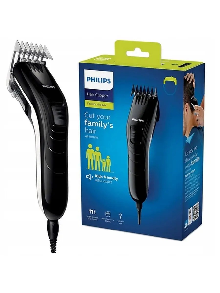 The Philips QC5115/15 hair clipper allows you to create a neat hairstyle at home. It's extremely lightweight and compact. The quiet motor makes it safe for children to use, as the noise won't frighten them. MODEL FEATURES: The clipper has 11 length settings, ranging from 3 to 21 mm. A tilt-up head makes cleaning easy. Rounded blades and combs prevent skin irritation. The clipper blades never require lubrication, and their unique design makes them self-sharpening.
