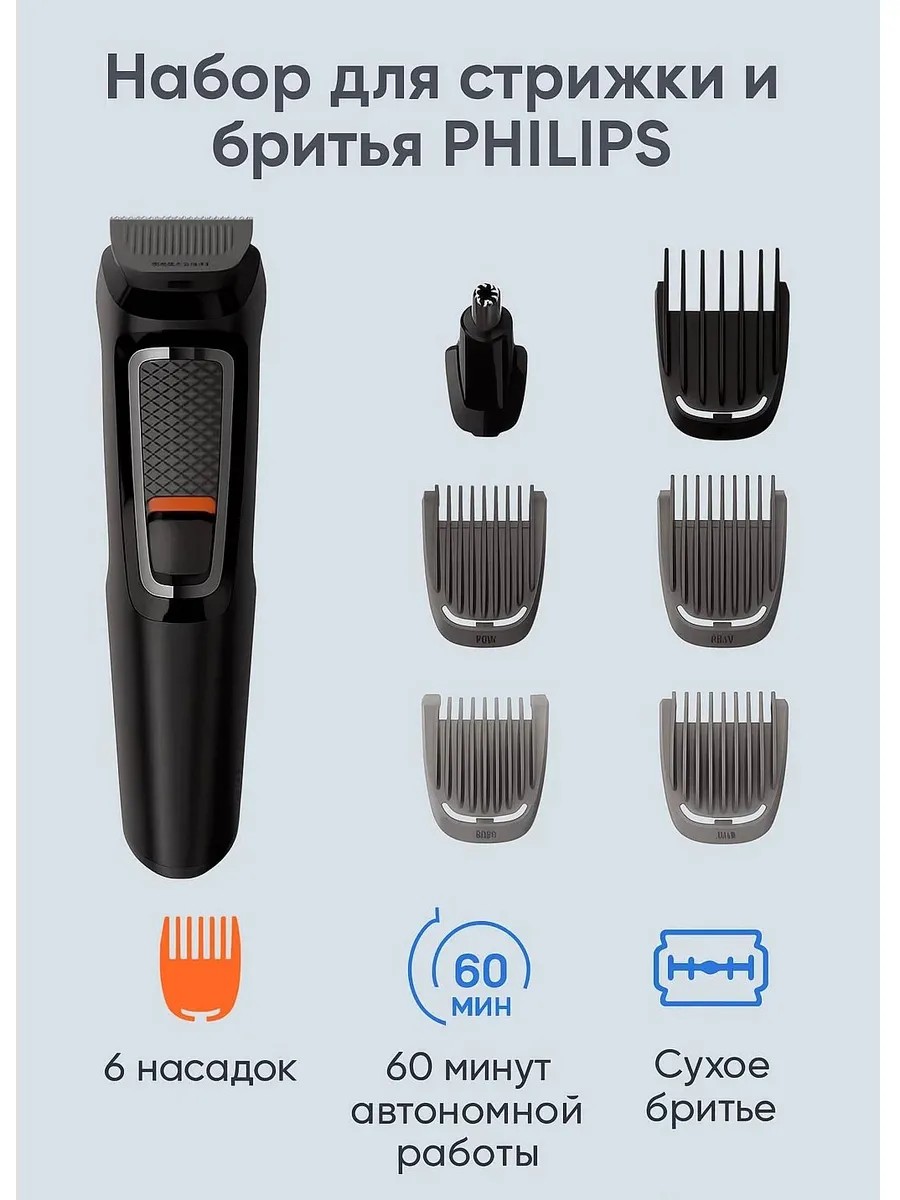 ЕВРОВИЛКА(нужен адаптер)Набор для стрижки и бритья PHILIPS MG 3710/33 — это идеальное решение для тех, кто ценит комфорт и удобство в уходе за своей внешностью. Мощный аккумулятор Li-Ion обеспечивает до 60 минут автономной работы, а быстрая зарядка позволит вам быстро подготовиться к стрижке. Набор включает в себя 6 насадок для создания различных причесок, а минимальная длина стрижки 0.5 мм позволит добиться идеального результата. Благодаря прочной конструкции из пластика и нержавеющей стали, этот набор прослужит вам долго. С помощью PHILIPS MG 3710/33 вы сможете легко поддерживать стильный и ухоженный вид в домашних условиях.