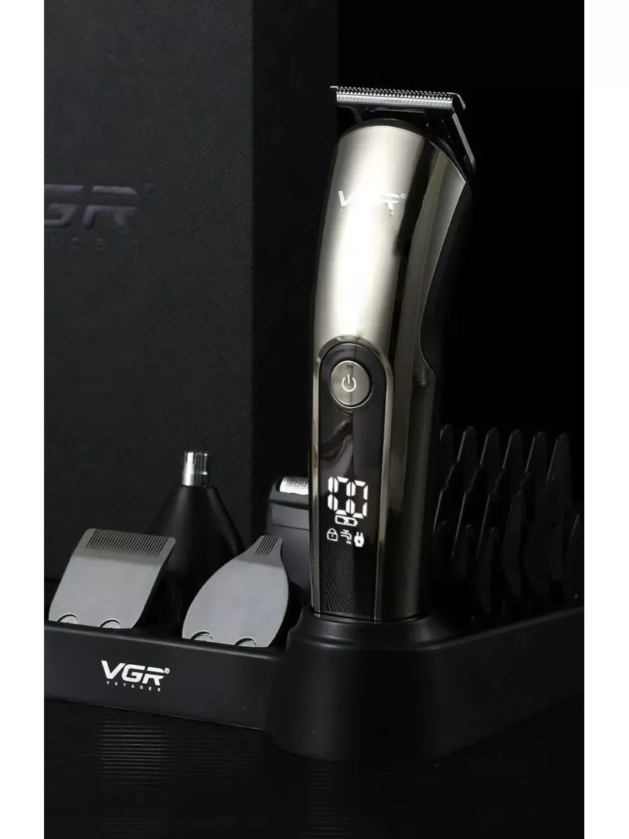 The V.G.R. Professional haircut set is a versatile tool for creating the perfect look both at home and in a professional salon. This set includes a high-quality hair clipper and trimmer, both equipped with sharp stainless steel blades, ensuring a precise and even cut. The set includes 10 attachments that allow you to adjust the cutting length from 0.1 mm, as well as special attachments for the beard, nose, and ears. The clipper is both cordless and corded, ensuring convenient use anywhere. The lithium-ion battery provides up to 150 minutes of cordless runtime. Indicators on the body indicate battery level, lock status, and lubrication need. With its ergonomic design and durable metal and plastic body, this haircut set will be a reliable assistant in creating stylish looks.
