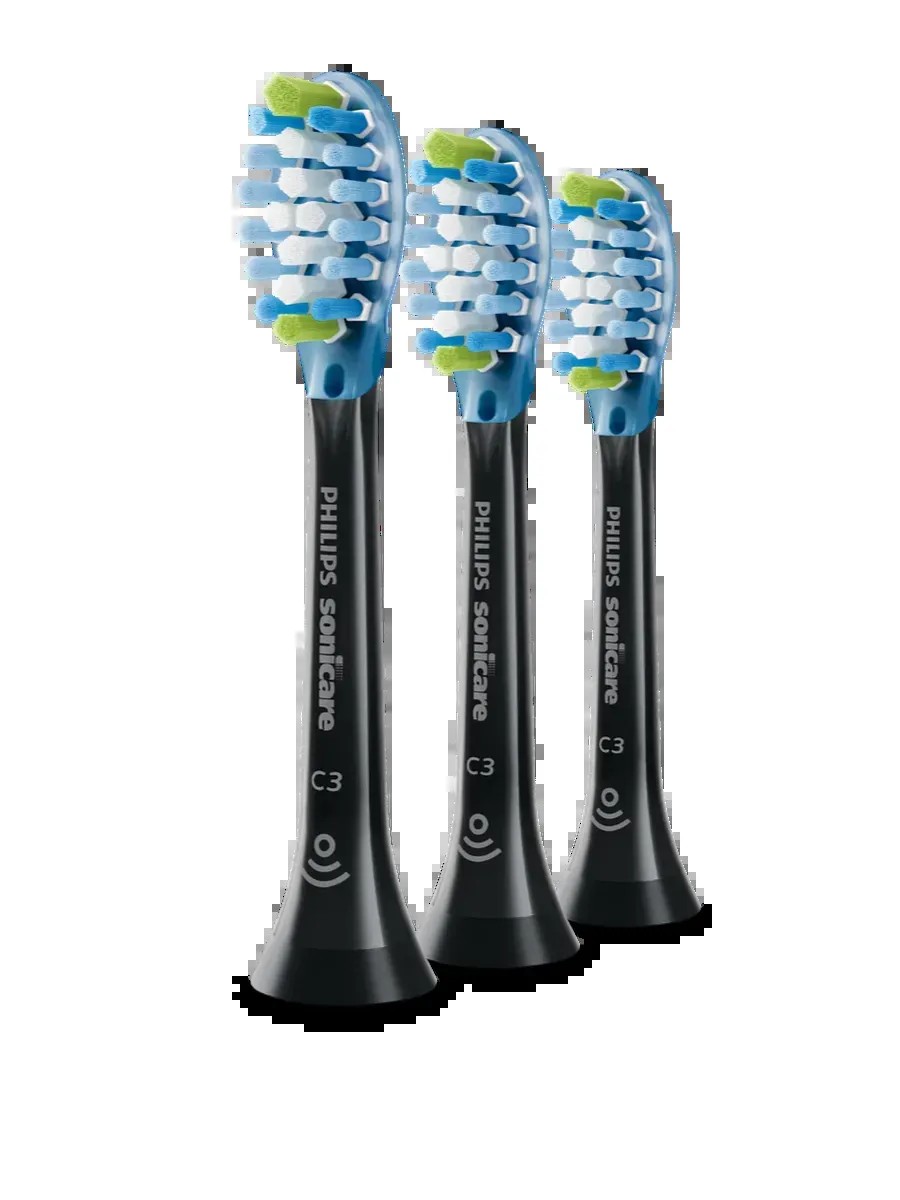The Philips Sonicare C3 Premium Plaque Defense HX9043/96 brush head set is made in black, which gives it a stylish and modern look.