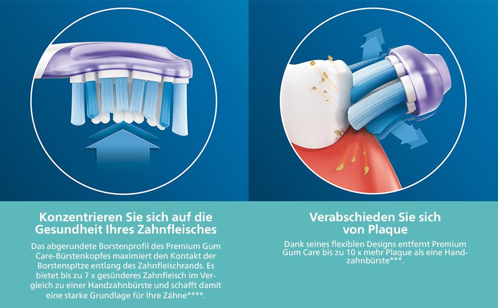 scope of delivery: 2 G3 Premium Gum Care brush heads.Philips Sonicare Schalltechnology: Rinsing water into the interdental spaces and loosens removes plaque.No more plaque: With its flexible design, up to 10 times more plaque is removed.Adaptive cleaning technology: You can get personalized cleaning with every brushing of your teeth.Focus on gums: With Premium Gum Care, the most thorough cleaning is gently and gentle.