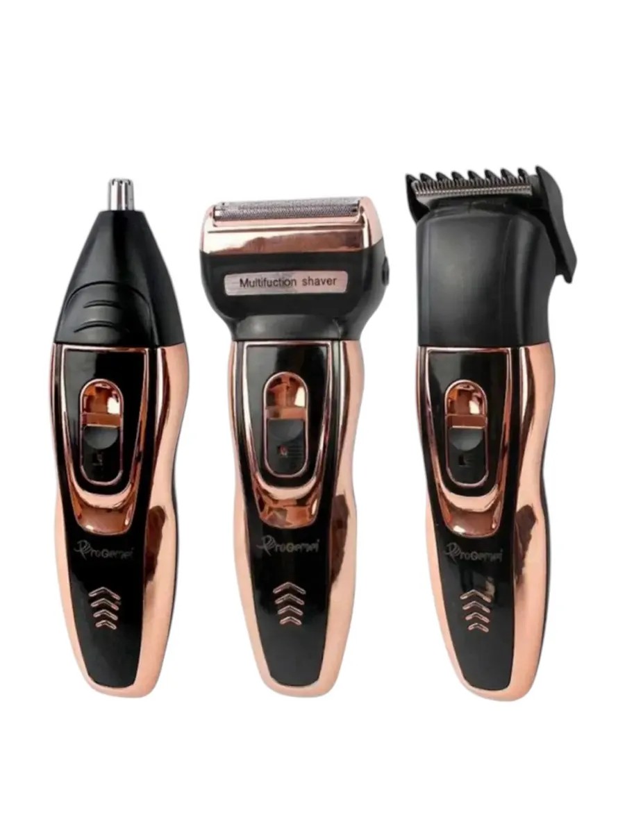 Набор для стрижки 3 в 1 заменяет собой несколько приборов. Вы сможете гладко бриться, подравнивать контуры бороды и висков, а также избавляться от нежелательных волос на теле. Электробритва оснащена сетчатой бритвой, которая идеально подойдет для кожи с высокой чувствительностью. В ней бритвенная головка отделена от лица сеточкой, которая исключает вероятность пореза и снижает раздражающее воздействие. Режущие элементы триммера изготовлены из сплава титана, который обеспечивает высокую надежность и долговечность. Бодигруммер с регулируемой насадкой дает возможность выбрать длину волос от 3 до 6 мм, с шагом в 1 мм. Имеет аккумуляторный тип питания. Время работы при полном заряде составляет 60 минут.
