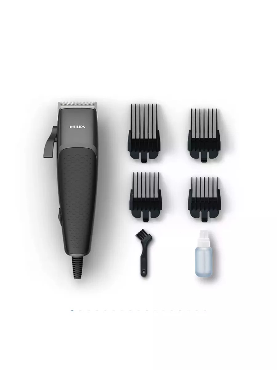 Triple UK plug (EU plug adapter included). The Philips HC3100/13 hair clipper is perfect for grooming your hair or beard at home. Its blades are precisely adjustable from 0.5 mm to 3 mm, allowing you to trim stubble and shorten hair without using attachments. Additional combs allow you to create a variety of looks. The ergonomic handle fits comfortably in your hand and is non-slip, ensuring precise and accurate movements.