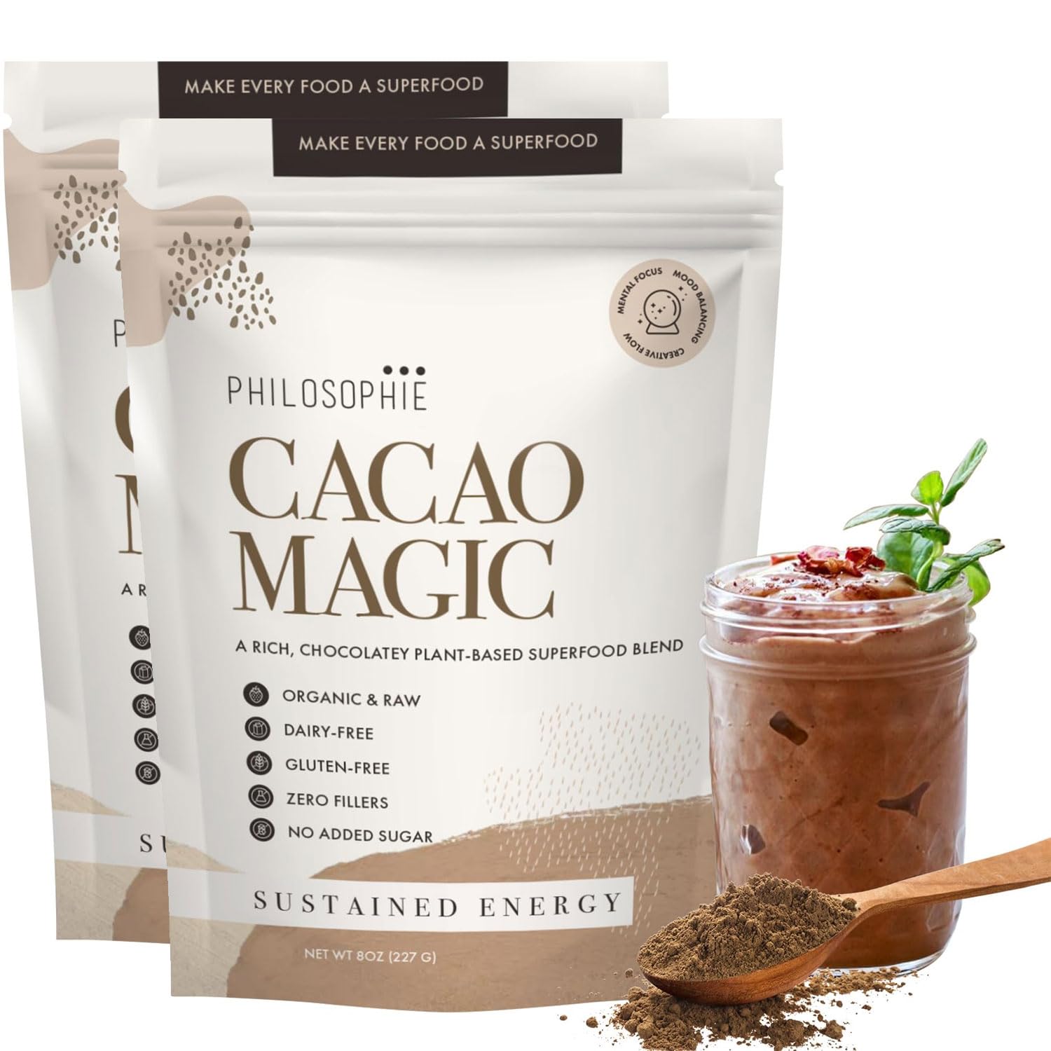 QUALITY SAFETY - We consciously source and rigorously test our ingredients, including third-party testing, to ensure we're providing you the highest quality products possible. VERSATILE DELICIOUS – Add this raw cacao superfood blend to smoothies, oatmeal, nut butters, or baked goods for a rich chocolatey flavor with added health benefits. It also makes a great addition to protein shakes or post-workout snacks. Enjoy a naturally energizing, nutrient-dense boost in every scoop!. KETO, VEGAN PALEO FRIENDLY – Designed to fit a variety of diets, this superfood protein powder is keto-friendly, vegan, paleo, and Whole30-approved. Adaptogenic herbs and nutrient-dense cacao provide a natural energy boost without artificial additives. Whether you're on a health-conscious diet or just love chocolate, this blend fits seamlessly into your routine. CLEAN, SUGAR FREE ALLERGEN-FREE FORMULA – This organic cacao superfood mix is dairy-free, gluten-free, soy-free, and contains no added sugars or artificial fillers. Made with 100 natural ingredients, it's a perfect choice for those with dietary restrictions. Enjoy a pure, clean, and guilt-free way to elevate your nutrition. PLANT-BASED PROTEIN NUTRIENTS – Our raw cacao powder blend provides a rich source of plant protein with more magnesium than broccoli and more calcium than milk. It delivers 10 times the free radical protection of green tea, helping to nourish your body from the inside out. Fuel your day with this all-natural, protein-packed superfood. POWERFUL SUPERFOOD BLEND – This organic cacao superfood powder is packed with nutrient-rich ingredients like raw cacao, reishi mushroom, maca root, chia seeds, and hemp protein. Loaded with free radical scavengers and magnesium, it helps support overall wellness and natural energy levels. Enjoy a clean, sugar-free boost from nature's most powerful superfoods.