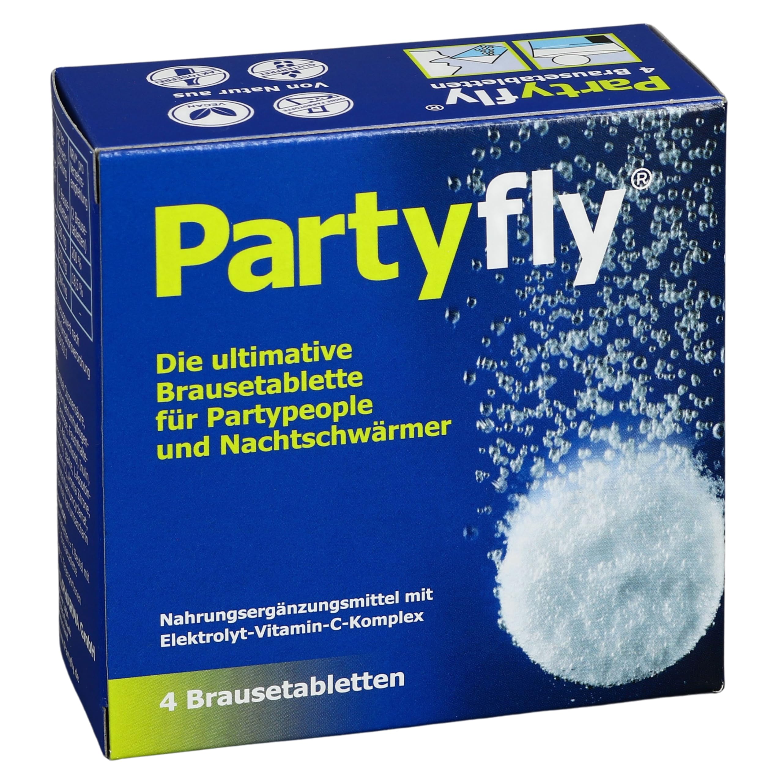 The PARTYFLY nutritional supplement contains a special electrolyte-vitamin C complex with potassium, sodium and vitamin C. Vitamin C contributes to the reduction of tiredness and fatigue. Potassium supports normal functioning of the nervous system. PARTYFLY is a German brand product developed by a pharmacist and registered with the Federal Office for Consumer Protection and Food Safety. INGREDIENTS citric acid, sodium hydrogen carbonate, dextrose, sorbitol, potassium chloride, inulin, sodium chloride, starch, L-ascorbic acid, lemon flavor, sweeteners sodium cyclamate, sodium accharinVegan and without colourants. Ideal for on the go. With vitamin C. 12 effervescent tablets 3 x 4 pieces.PARTYFLY 12 stuks bruistabletten 3 x 4 stuks - met vitamine C en elektrolyten - reload Het voedingssupplement PARTYFLY bevat een speciaal elektrolyt-vitamine C-complex met kalium, natrium en vitamine C. Vitamine C draagt bij aan de vermindering van vermoeidheid en vermoeidheid. Kalium ondersteunt een normale werking van het zenuwstelsel. PARTYFLY is een Duits merkproduct dat door een apotheker is ontwikkeld en geregistreerd is bij het Bundesamt für Consumentenbescherming en Voedselveiligheid. INGREDIËNTEN citroenzuur, natriumwaterstofcarbonaat, dextrose, sorbitol, kaliumchloride, inuline, natriumchloride, zetmeel, L-ascorbinezuur, aroma citroen, zoetstoffen natriumcyclamaat, natrium accharineVeganistisch en zonder kleurstoffen. Ideaal voor onderweg. Met vitamine C. 12 bruistabletten 3 x 4 stuks.