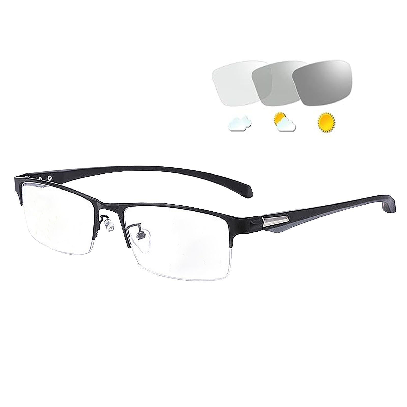 Specifications: 100 % brand new Gender: Unisex Objective: Photochrome UV400 transition lens Frame: As shown Frame color: As the picture shows (optional) Size: frame width 140 mm, frame height 33 mm, lentil width 55 mm, frame length 148 mm, nose bridge 21 mm Strength: +1.0 ~ +4 Included: 1 pair of presbyopia glasses (other accessories are not included). A notice: 1. Please allow 1-2 cm measuring deviation due to the manual measurement. 2. Due to the different monitor and light effect, the actual color of the article may differ slightly from the color shown in the pictures.fashion design: classic design, elegant appearance, leader in fashion trend.Universal size, suitable for most facial shapes.Reading glasses can contribute to the preservation of the eye health by reducing the strain on the eyes and relieving the presumption of presumption.They are also the perfect gift for parents and seniors.Portable reader: Our reading glasses for men are light so that you can carry them comfortably.Ideal for trips or outdoor activities.Reduce the load on the eyes and inconvenience by reading, computer/TV/cell phone/laptop use and work under neon light.Comfortable: Our anti-blue light reading glasses for men consists of a PC frame that is durable and light-resistant.High -quality plastic brackets and acrylic glasses ensure comfort and ensure that there is no pressure and no symptoms on the nose when carrying for a long time.Light material frame, flexible and convenient for long -term wear.AC transparent lens rests the real color restored, precise enlargement, ensures a clear view.Anti-blue light: Blue light blockers with UV400 protection helps you to filter more than 95 % of the harmful blue light when reading books, magazines or newspapers.Do not worry about headaches, overexertion of the eyes or dry eyes caused by hours of reading.Chromical lens: Photochrome reading glasses are clear indoors or at night and automatically darken to a tint tone if they are exposed to UV sunlight.As soon as the glasses are not exposed to UV sunlight, they start to clarify and become visibly brighter and largely clear within a few minutes.Suitable for indoor and outdoor use. Spezifikationen: 100 % brandneu Geschlecht: Unisex Objektiv:Photochrome UV400-Übergangslinse Rahmen: Wie abgebildet Rahmenfarbe: Wie das Bild zeigt (optional) Größe: Rahmenbreite 140 mm, Rahmenhöhe 33 mm, Linsenbreite 55 mm, Rahmenlänge 148 mm, Nasensteg 21 mm Stärke: +1,0~+4 Im Lieferumfang enthalten: 1 Paar Presbyopie-Brille (anderes Zubehör ist nicht im Lieferumfang enthalten). Hinweis: 1. Bitte erlauben Sie 1-2 cm Messabweichung aufgrund der manuellen Messung. 2. Aufgrund des unterschiedlichen Monitor- und Lichteffekts kann die tatsächliche Farbe des Artikels geringfügig von der auf den Bildern gezeigten Farbe abweichen.MODE-DESIGN: Klassisches Design, elegantes Erscheinungsbild, führend im Modetrend. Universalgröße, passend für die meisten Gesichtsformen. Eine Lesebrille kann zur Erhaltung der Augengesundheit beitragen, indem sie die Belastung der Augen verringert und die Alterssichtigkeit lindert. Sie sind auch das perfekte Geschenk für Eltern und Senioren. TRAGBARES LESEGERÄT: Unsere Lesebrillen für Männer sind leicht, sodass Sie sie bequem tragen können. Ideal für Reisen oder Outdoor-Aktivitäten. Reduziert die Belastung der Augen und Unannehmlichkeiten durch längeres Lesen, Computer-/TV-/Handy-/Laptop-Nutzung und Arbeiten unter Neonlicht. KOMFORTABEL: Unsere Anti-Blaulicht-Lesebrille für Herren besteht aus einem PC-Rahmen, der langlebig und lichtbeständig ist. Hochwertige Kunststoffbügel und Acrylgläser sorgen für Komfort und sorgen dafür, dass bei längerem Tragen kein Druck und keine Beschwerden auf der Nase entstehen. Leichter Materialrahmen, flexibel und bequem für langfristiges Tragen. AC-transparente Linse, stellt die echte Farbe wieder her, genaue Vergrößerung, sorgt für klare Sicht. ANTI-BLAUES LICHT: Blaulichtblocker mit UV400-Schutz hilft Ihnen, mehr als 95 % des schädlichen Blaulichts beim Lesen von Büchern, Zeitschriften oder Zeitungen zu filtern. Machen Sie sich keine Sorgen mehr über Kopfschmerzen, Überanstrengung der Augen oder trockene Augen, die durch stundenlanges Lesen verursacht werden. CHROMISCHE LINSE: Photochrome Lesebrillen sind in Innenräumen oder nachts klar und verdunkeln sich automatisch zu einer Sonnenbrillentönung, wenn sie UV-Sonnenlicht ausgesetzt werden. Sobald die Gläser keinem UV-Sonnenlicht ausgesetzt sind, beginnen sie zu klären und werden innerhalb weniger Minuten sichtbar heller und größtenteils klar. Geeignet für den Innen- und Außenbereich.Photochrome Progressive Multifokus Lesebrille, Selbsttönende UV400 Lesebrille, Photochrome Herren Damen Halbrandbrille Rechteckiger, UV-Schutz-Sonnenbrille zum Lesen im Freien (3.0 x)