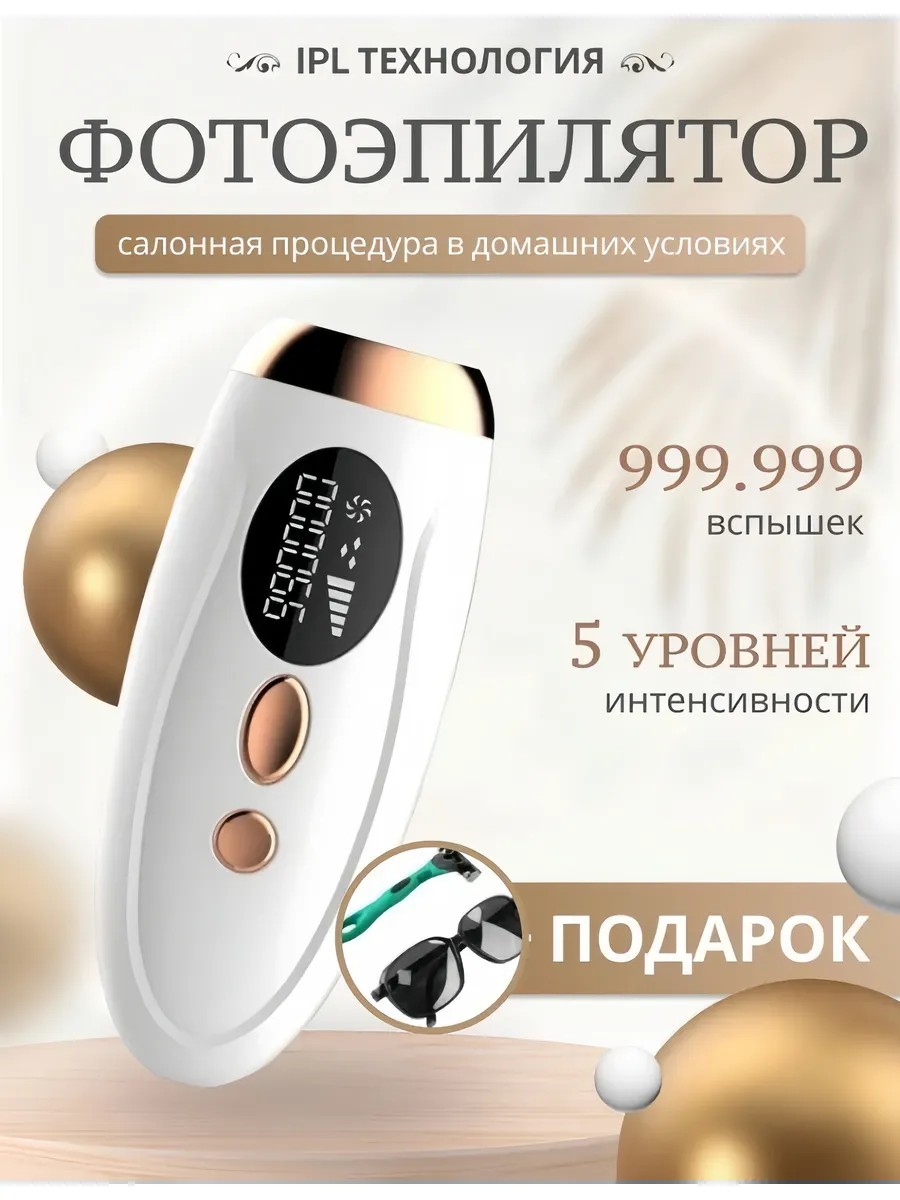 Laser hair removal is now accessible to everyone. Using a special laser hair removal device, you can remove hair at home at your convenience. A photoepilator consists of a device, charger, and instructions. The laser epilator is safe—select different power levels, and the built-in display helps you monitor the process. Laser hair removal is safe and certified. The epilator leaves no pigment spots and has a beneficial effect on your skin—tightening and elasticity are ensured by high-frequency light pulses and radio wave therapy. A photoepilator can be used from the age of 18, excluding pregnancy and breastfeeding. Laser hair removal is now accessible to everyone. Laser hair removal is available at your convenience, anywhere. You can purchase an epilator now and use it locally, individually, according to your skin's needs. Considering the long lifespan of a laser epilator (approximately 12 years), If you consider the cost of waxing and razor hair removal, hair removal is cheaper. The cartridge lasts for 999,000 light flashes. A laser hair removal device saves not only money but also time thanks to its high speed. The device treats multiple hair follicles in one area simultaneously, providing effective, targeted action on the hair follicle. The follicle then goes dormant, causing the hair to fall out. The device has a stylish, ergonomic design. Weighing only 260 grams, it's comfortable and easy to hold. Using a laser hair removal device, you'll achieve completely smooth skin free of unwanted hair for at least 6 months. Directions: Press the working part onto thoroughly washed and dried skin and press the button. A flash of light will occur, lasting up to four seconds. Caution: Prolonging the exposure time may cause burns.