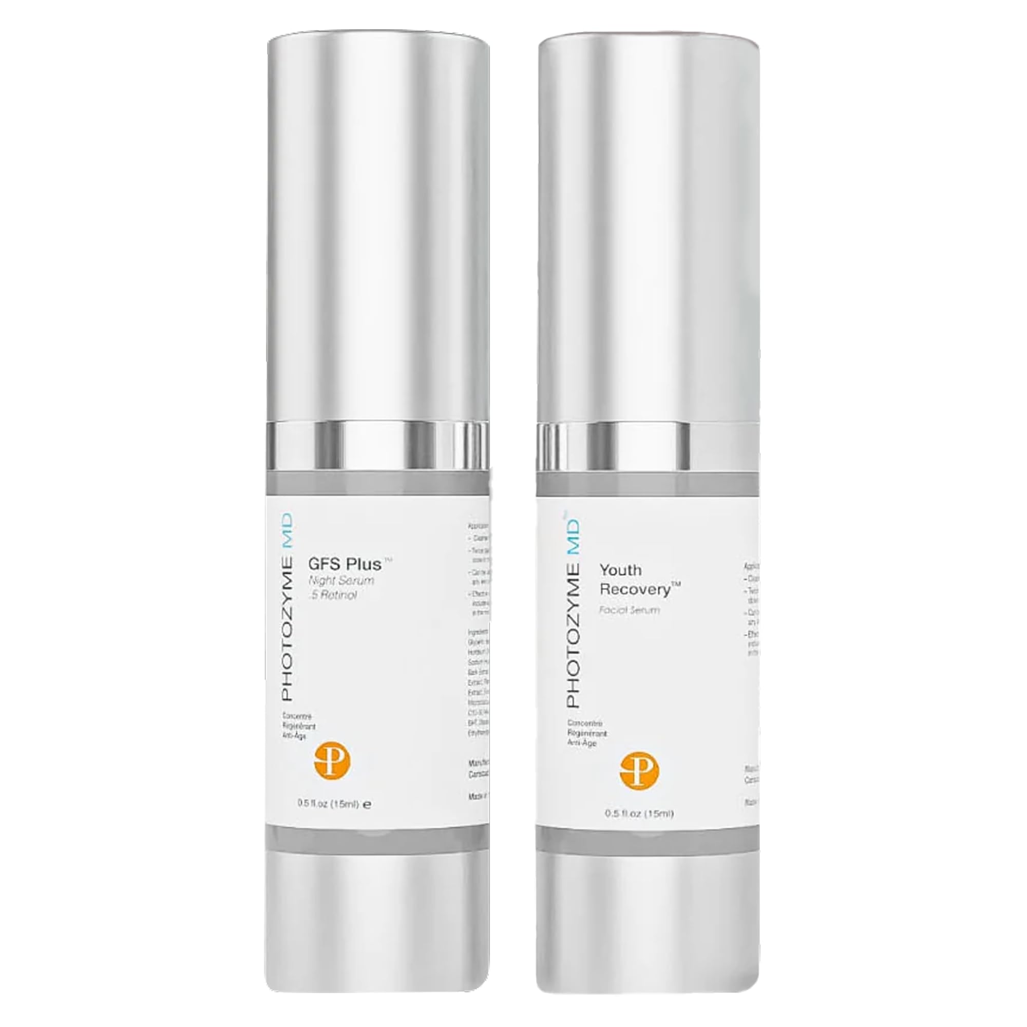 Photozyme Petite Duo Travel Set Anti-Aging Skincare Kit with DNA Repair Serum & 0.5% Retinol Night Serum Travel Size Hydrating & Brightening Serums for Fine Lines & Sun Damage Two 0.5 fl oz