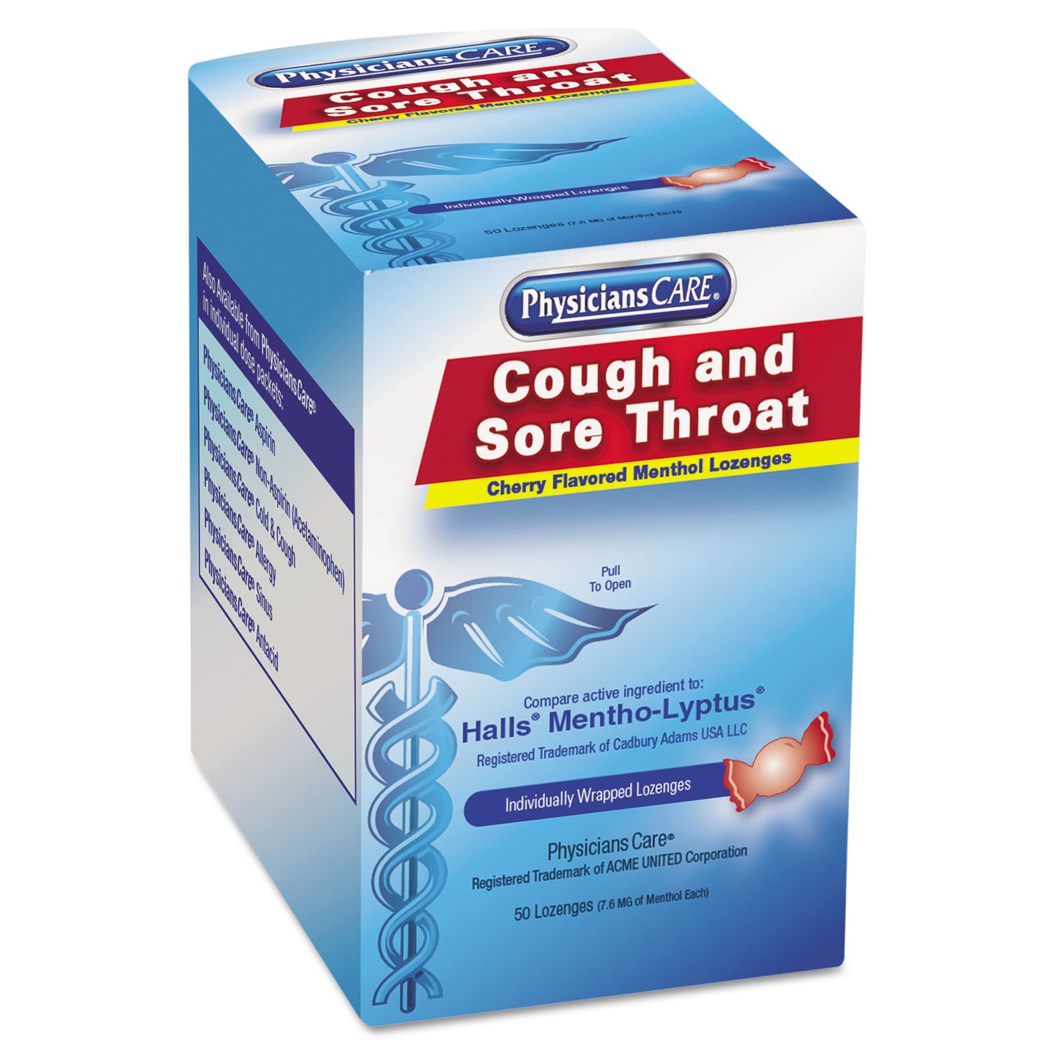 PhysiciansCare 90306 Cough and Sore Throat Cherry Menthol Lozenges 50 Individually Wrapped per Box