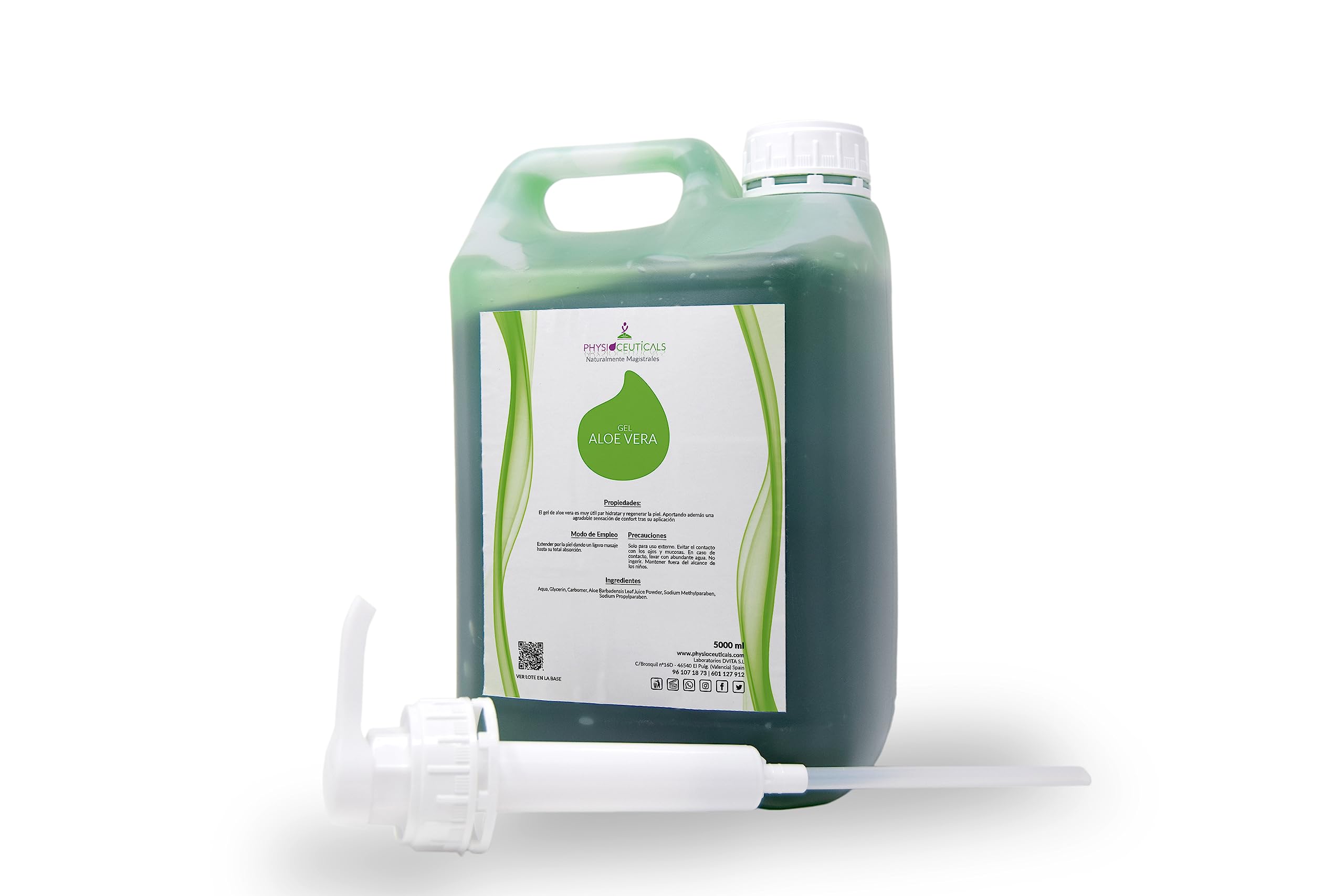 This professional-grade aloe vera moisturizing gel, suitable for all skin types, contains 99 aloe vera. It stimulates and strengthens collagen and elastin fibers.DIRECTIONS FOR USE: Apply the required amount to clean skin, gently massaging in circular motions until fully absorbed. Repeat if necessary. DEEP HYDRATION: Combined with glycerin for added nourishment, it leaves skin feeling comfortable and hydrated for hours. ? AFTER SUN AND HAIR REMOVAL: Ideal for soothing skin after sun exposure, laser hair removal, or skin irritations. DISPENSER PUMP INCLUDED - Dispensing pump allows for easy use of the exact amount of product, simplifying application and preventing waste. 99.9 PURE ALOE VERA: Maximum concentration aloe vera gel with moisturizing, soothing, and regenerating properties for all skin types.Le gel hydratant à l'aloe vera à usage professionnel, pour tous les types de peau, contient 99 d'Aloe Vera. Stimule et renforce les fibres de collagène et d'élastine.CONSEILS D'UTILISATION : Appliquer la quantité nécessaire sur une peau propre en massant délicatement par mouvements circulaires jusqu'à absorption complète. Répéter l'opération si nécessaire. HYDRATATION PROFONDE : Associée à de la glycérine qui apporte une nutrition supplémentaire, elle laisse une sensation de confort et une peau hydratée pendant des heures. ? APRÈS SOLEIL ET ÉPILATION : Idéal pour apaiser la peau après une exposition au soleil, une épilation au laser ou des irritations cutanées. POMPE DOSEUSE INCLUSE - Pompe doseuse qui permet d'utiliser facilement la quantité exacte de produit, facilitant ainsi l'application et évitant le gaspillage. 99,9 D'ALOE VERA PUR : Gel d'aloe vera à concentration maximale aux propriétés hydratantes, apaisantes et régénératrices pour tous les types de peau.PHYSIOCEUTICALS - Gel d'aloe vera pur à 99,9 Naturel 5000 ml Pompe doseuse - Hydratant pour peaux sèches et irritées, après épilation et après-soleil