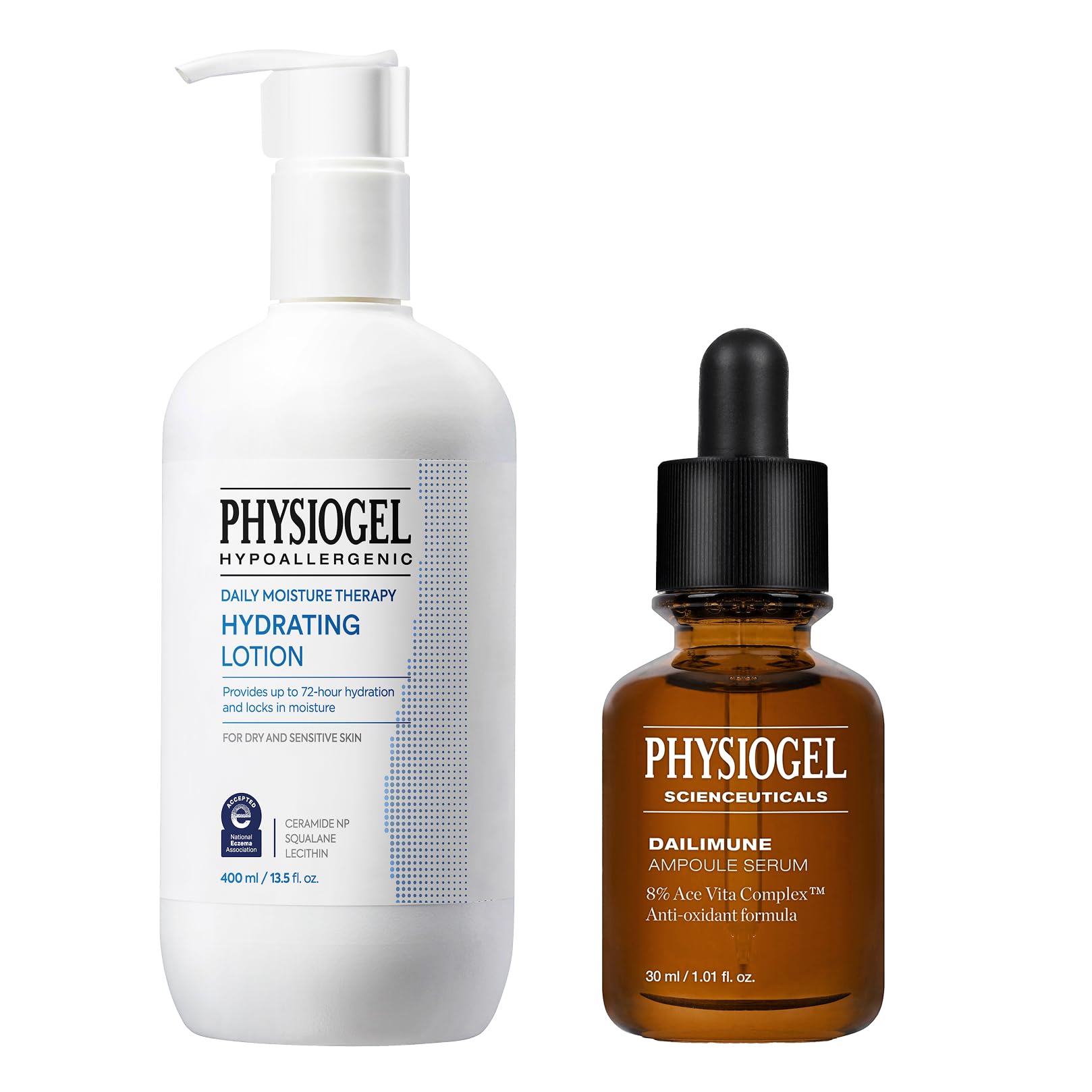 Physiogel Face, Body Lotion, and Serum, Korean skin care, Provides 72 hrs of Hydration for Dry Sensitive Skin, Vitamin C soothing Face Serum, Strengthens Skin Barrier Antioxidant.