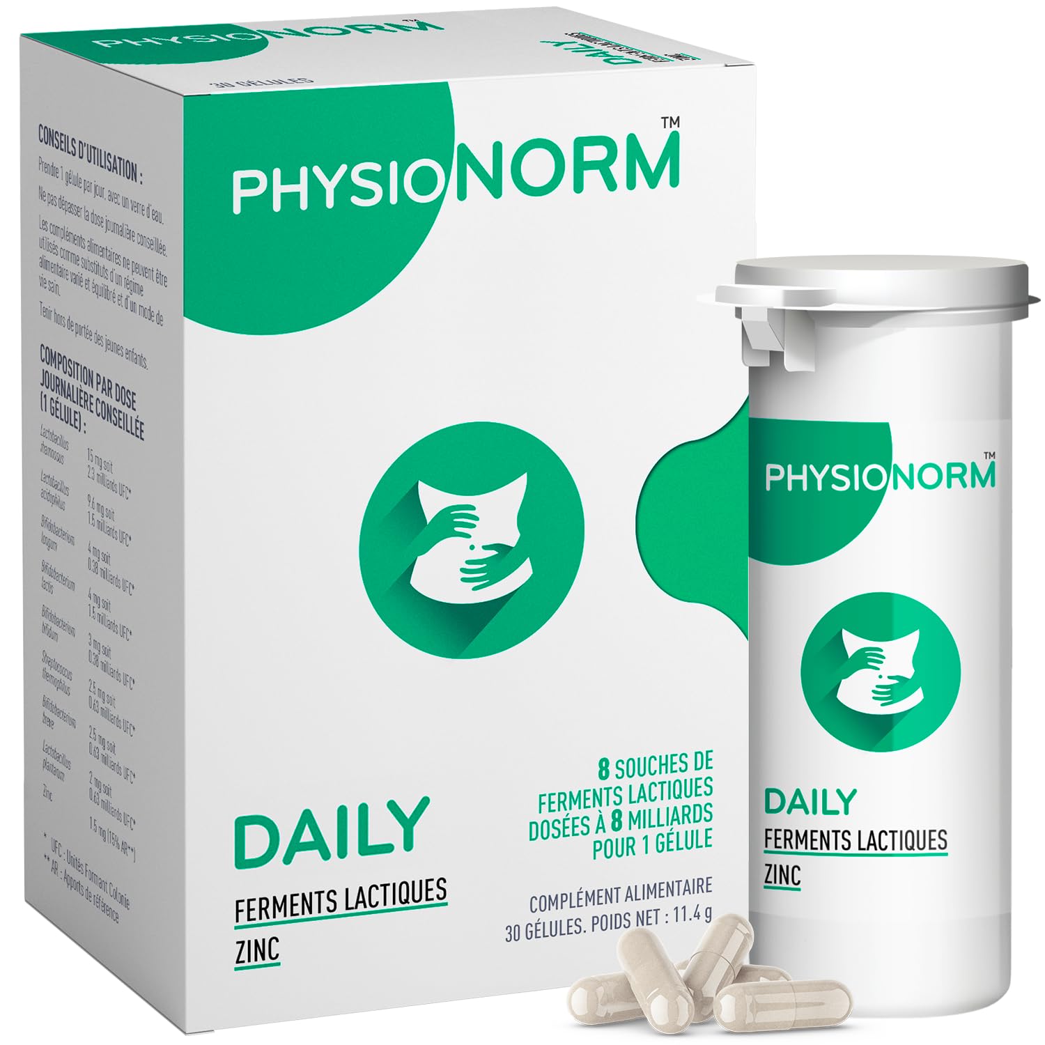 Physionorm Daily - Probiotiques Flore Intestinale Zinc - Complément Alimentaire pour Confort Digestif, Ballonnements, Transit Colon Irritable - Cure Ventre Plat - 30 Gélules