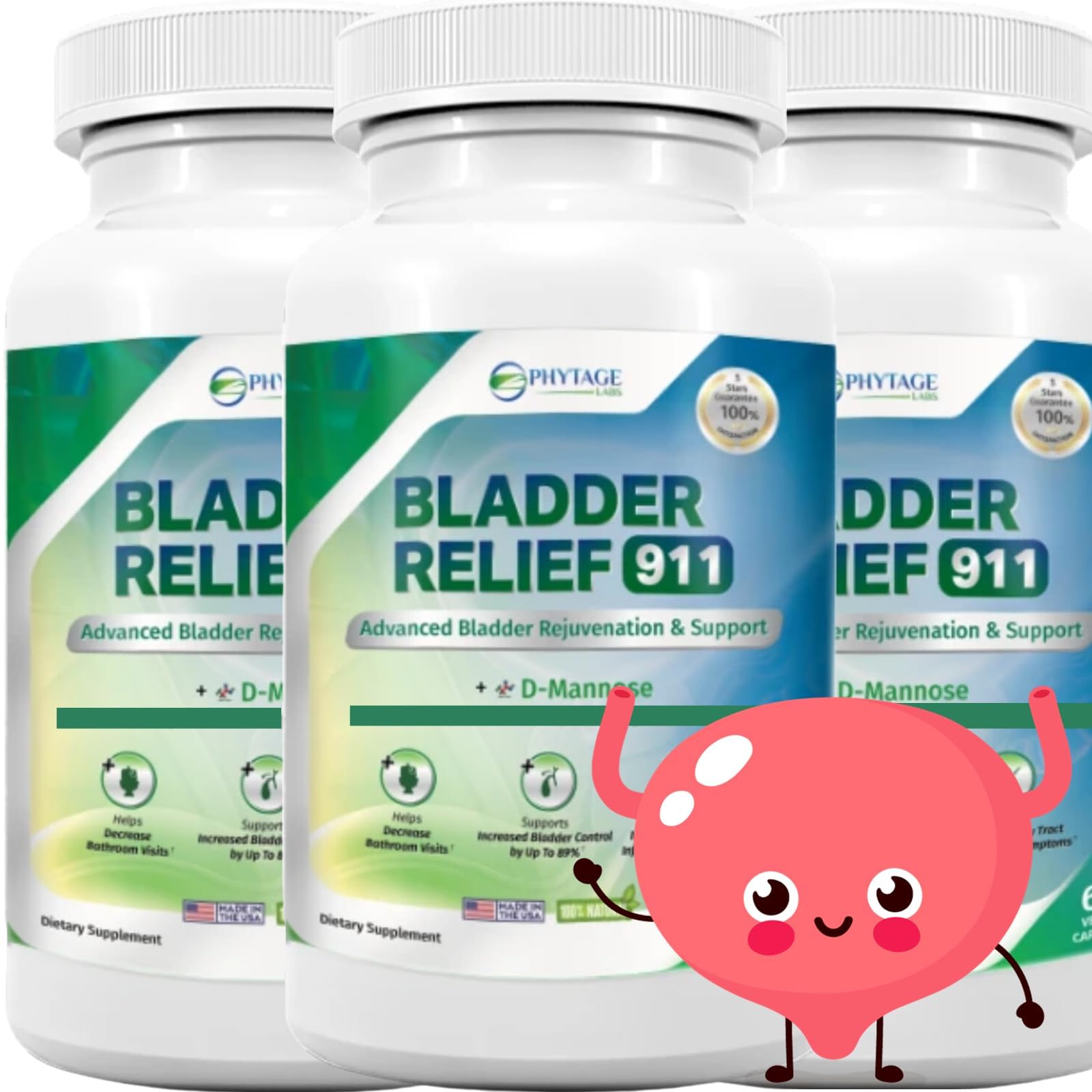 Phytage Labs Bladder Relief 911 Advanced Bladder Support for Men & Women Detoxifying Formula 60 Veggie Capsules (3-Pack)