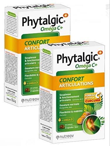 Phytalgic Omega C Comfort Joints is a food supplement. Flexibility and joint functioning - Turmeric, Vitamin C Normal bones - Manganese, Zinc Flexibility and mobility - Turmeric My joint comfort regained! Joint discomfort can be present at any time of life. Age, intense physical activity, being overweight, and a sedentary lifestyle are factors that contribute to the weakening and wear of joints. All of them can be affected: the knee, hip, finger or shoulder joints. To help you find better joint comfort Phytalgic Omega C , resulting from Nutreov Laboratories research, combines in a unique formula a synergy of active ingredients to help the proper functioning of the joint: Omega 3, fatty acids are recognized for their benefits, Turmeric helps maintain good mobility and flexibility of joints and tendons, Manganese and Zinc contributes to the maintenance of normal bones, Vitamin C contributes to the normal formation of collagen to ensure the normal function of bones, cartilage and blood vessels. Vitamin E has an antioxidant action. Nettle, known for its benefits, completes the formula. Its : A formula with complete active ingredients of plant origin enriched with turmeric and piperine. Ingredient focus: Nettle or Urtica dioica has benefits recognized since antiquity. Its leaves, recognized for their benefits, make it an active ingredient of choice for joint comfort. Nutreov Laboratories, the first Phyto-Nutraceutical laboratories, bring the best of nature to your health. Innovative, effective and safe, the solutions proposed take into account the close links that exist between physiological balance, physical condition and psychological well-being. Made in the European Union. Net weight: 53.4g. Packaging: 60 capsules - 2 capsules day INGREDIENTS Fish oil - Envelope: fish gelatin - Stabilizer: glycerol - Thickener: mono and diglycerides of fatty acids (E471), Dry extract of nettle leaves Urtica dioica L. - Dry extract of turmeric roots Curcuma longa L. - Vitamins C (calcium L-ascorbate) - Zinc (zinc citrate) - Vitamin E (zinc acetate DL-alpha-tocopheryl) - Emulsifier: rapeseed lecithin - Manganese (manganese bisglycinate) - Dry extract of black pepper Piper nigrum L.Brand: Healthing. Product Type: NUTRITIONAL_SUPPLEMENT. PHYTALGIC Omega C Joint Comfort - Pack of 2 Boxes of 60 Capsules (Pack2)…. Phytalgic Oméga C Confort Articulations est un complément alimentaire. Souplesse et fonctionnement articulaire - Curcuma, Vitamine C Ossature normale - Manganèse, Zinc Flexibilité et mobilité - Curcuma Mon confort articulaire retrouvé ! Les gênes articulaires peuvent être présentes à tout moment de la vie. L'âge, une activité physique intense, le surpoids, la sédentarité sont des facteurs qui contribuent à la fragilisation et l'usure des articulations. Toutes peuvent toutes être touchées : les articulations du genou, de la hanche, des doigts ou encore des épaules. Pour vous aider à retrouver un meilleur confort articulaire Phytalgic Oméga C , issu de la recherche des Laboratoires Nutreov associe dans une formule unique une synergie d'actifs pour aider au bon fonctionnement de l'articulation : Les oméga 3, acides gras sont reconnus pour leurs bienfaits, Le curcuma aide à maintenir une bonne mobilité et une bonne flexibilité des articulations et des tendons, Le manganèse et le zinc contribuent au maintien d'une ossature normale, La vitamine C contribue à la formation normale de collagène pour assurer la fonction normale des os, du cartilage et des vaisseaux sanguins. La vitamine E a une action antioxydante, L'ortie, reconnue pour ses bienfaits, complète la formule. Son : Une formule aux actifs d'origine végétale complète enrichie en curcuma et pipérine. Focus ingrédient : L'ortie ou Urtica dioica possède des bienfaits reconnus depuis l'antiquité. Ses feuilles, reconnues pour leurs bienfaits, en font un actif de choix pour le confort articulaire. Les Laboratoires Nutreov, 1ers laboratoires de Phyto-Nutraceutique, apportent à votre santé le meilleur de la nature. Innovantes, efficaces et sûres, les solutions proposées tiennent compte des liens étroits qui existent entre équilibre physiologique, condition physique et bien-être psychologique. Fabriqué en Union Européenne. Poids net : 53,4 g. Conditionnement : 60 capsules - 2 capsules jour INGRÉDIENTS Huile de poissons - Enveloppe : gélatine de poissons - Stabilisant : glycérol - Epaississant : mono et diglycérides d'acides gras (E471), Extrait sec de feuilles d'ortie Urtica dioica L. - Extrait sec de racines de curcuma Curcuma longa L. - Vitamines C (L-ascorbate de calcium) - Zinc (citrate de zinc) - Vitamine E (acétate de DL-alpha-tocophéryle) - Emulsifiant : lécithine de colza - Manganèse (bisglycinate de manganèse) - Extrait sec de poivre noir Piper nigrum L.Marque: Healthing. Type de produit : NUTRITIONAL_SUPPLEMENT. PHYTALGIC Omega C Confort Articulaire - Pack de 2 Boîtes de 60 Gélules (Pack2)….