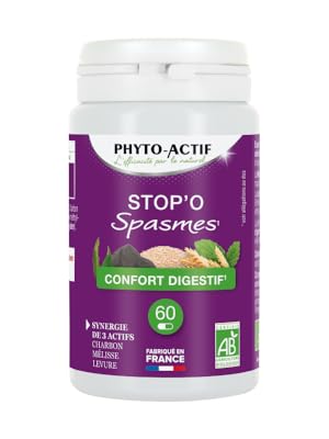 CONTENTS STOP O SPASMS 1 x 60 capsules. DIRECTIONS FOR USE Take 4 capsules with a glass of water. To be consumed without taking medication. This product is a dietary supplement and is not a substitute for a varied and balanced diet and a healthy lifestyle. Do not exceed the indicated daily dose. LABORATOIRE PHYTO-ACTIF Laboratoire Phyto-Actif, a French manufacturer dedicated to well-being and health for over 30 years. We create, manufacture, and distribute a range of high-quality, plant-inspired natural and or organic products. SYNERGY OF ACTIVE INGREDIENTS A formula that combines vegetable charcoal with lemon balm and yeast to help improve intestinal comfort and digestive well-being. Charcoal and yeast help reduce gas, flatulence, and bloating, while lemon balm promotes digestion, reduces spasms, and has an anti-inflammatory effect. STOP'O SPASMES Digestion food supplement that provides comprehensive action on digestive health and helps improve digestive and intestinal comfort by reducing flatulence, bloating and spasms.CONTENU STOP O SPASMES 1 x 60 gélules. CONSEILS D'UTILISATION Prendre avec un verre d'eau 4 gélules. A consommer en dehors de la prise de médicaments. Ce produit est un complément alimentaire et ne se substitue pas à une alimentation variée et équilibrée et à un mode de vie sain. Ne pas dépasser la dose journalière indiquée. LABORATOIRE PHYTO-ACTIF Laboratoire Phyto-Actif, fabricant français au service du bien-être et de la santé depuis plus de 30 ans. Créer, fabriquer et distribuer une gamme de produits naturels et ou biologiques de haute qualité, inspiré du végétal. SYNERGIE D'ACTIFS Formule qui associe le charbon végétal à la mélisse et à la levure pour contribuer à améliorer le confort intestinal et le bien-être digestif. Le charbon et la levure aident à réduire les gazs, les flatulences et les ballonnements, tandis que la mélisse favorise la digestion, réduit les spasmes et a un effet anti-inflammatoire. STOP'O SPASMES Complément alimentaire Digestion qui permet une action globale sur la santé digestive et contribue à améliorer le confort digestif et intestinal en réduisant les flatulences, les ballonnements et les spasmes.