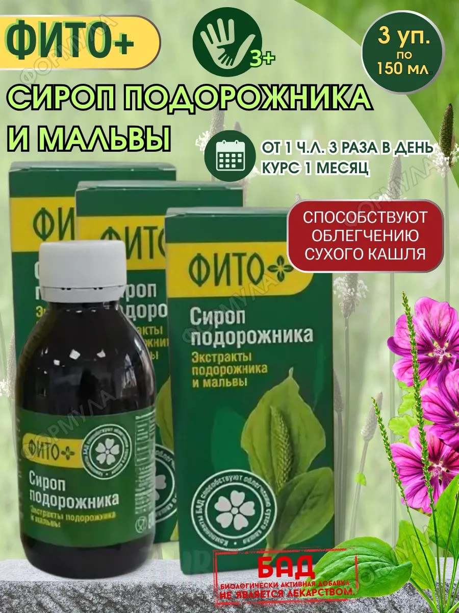 | Комплектация | Фито+ растительный сироп подорожника 150мл; 3 шт |