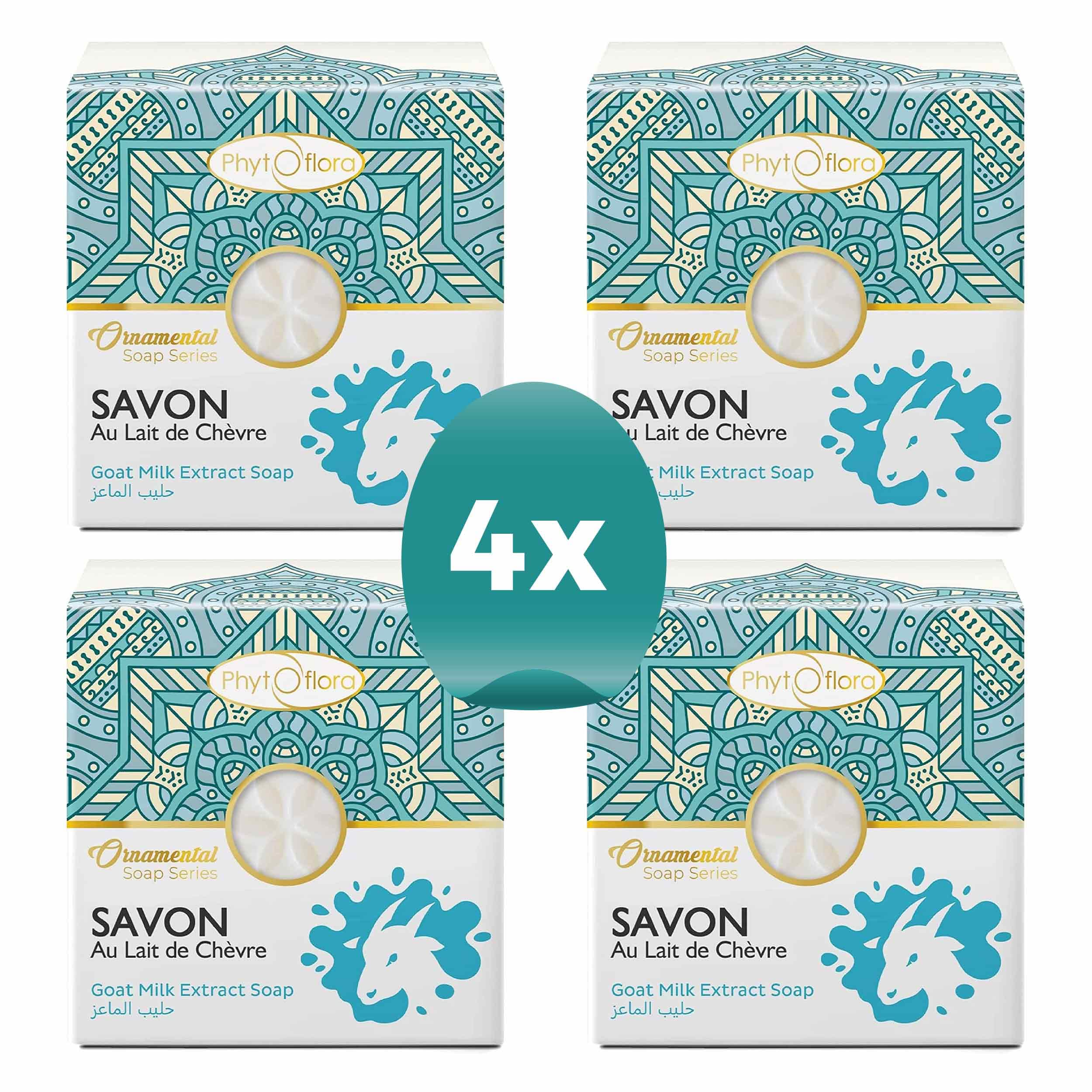 PhytoFlora Goat Milk Soap with Soap Dish | Anti-Acne Eczema and Blackheads | Face Scrub | Le Naturel Soap | All Skin Types (125.00 g (Pack of 4) 500 gram)