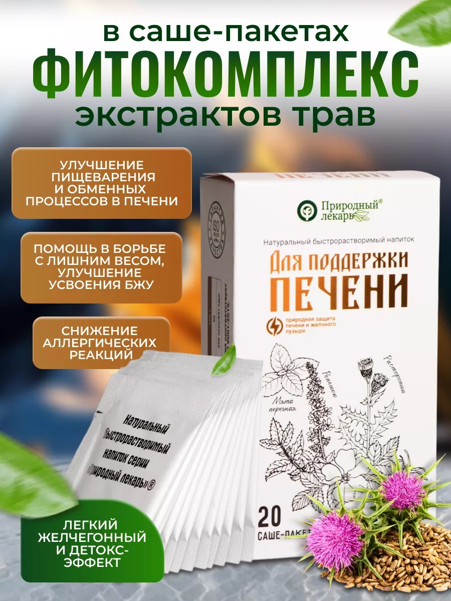 Фитокомплекс экстрактов трав Для поддержки печени. ТМ Природный лекарь. Производитель Фитоком Алтай.