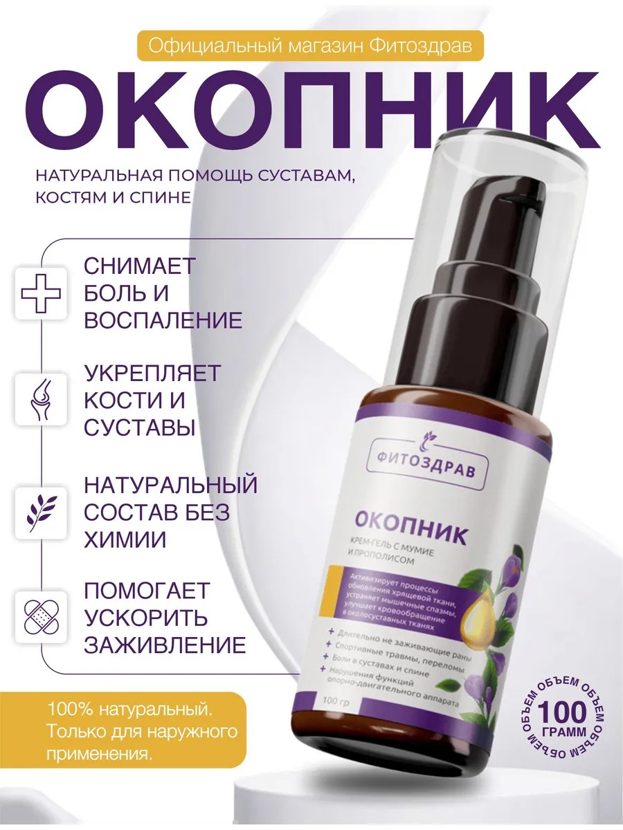 A pain-relieving ointment for joints and back based on comfrey, mumiyo, and propolis is a natural complex for the care of joints, muscles, and ligaments.