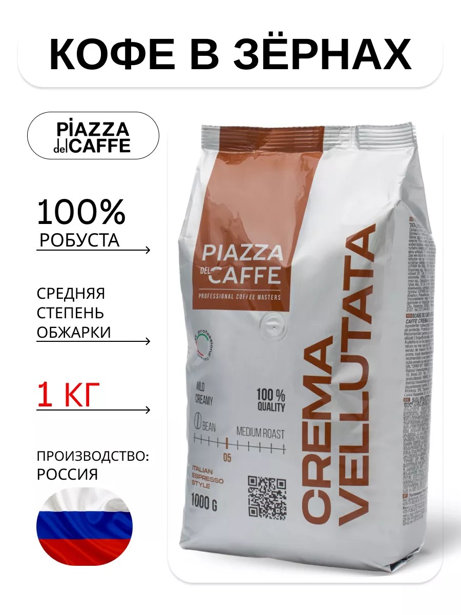 Кофе в зернах Piazza del Caffe Crema Vellutata - это ровный мягкий вкус с бархатистыми нотами для любителей неинтенсивного эспрессо. Зерновой кофе Пьяцца Крема Велютата подарит деликатный аромат, густую пенку и незабываемое долгое, тающее послевкусие. Кофе в зернах Пьяцца Крема Валютата - это воплощение. Для производства данного кофе в зернах используются новейшие технологии которые позволяют полностью полностью раскрыть все многообразие кофейных вкусов и ароматов. Piazza del Caffe Crema Vellutata обжариваются в итальянских ростерах, что позволяет создать и стабильное воспроизводить сложные профили обжарки.
