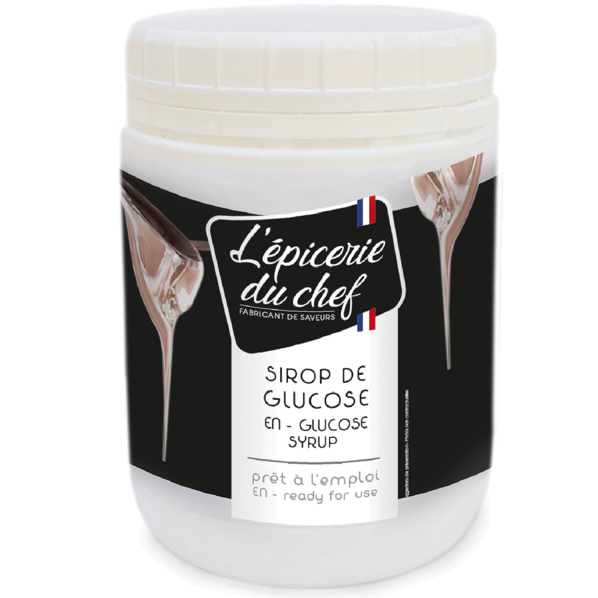 : Refillable jar of ready-to-use glucose syrup for pastries, confectionery, and ice cream. Net weight: 1 kg. Ingredients: Glucose syrup. For pastry and confectionery. P.when('A').execute(function(A) { A.on('a:expander:toggle_description:toggle:collapse', function(data) { window.scroll(0, data.expander. expander[0].offsetTop-100) }) }) Instructions for use: Storage: Store away from light in a cool, dry place. Close tightly after use. See moreMADE IN FRANCE – L'Épicerie du Chef is a French brand that designs baking ingredients and utensils for professionals and experienced home bakers seeking quality and large quantities. Our food products are manufactured and or packaged in France, in our workshops in Fondettes (37). DISCOVER OUR RANGE - Enhance your creations with our other ingredients: Dehydrated Glucose Powder 500g (ref. EDC8676), Gelatin Powder 200g (ref. 8636), Sparkling Sugar Sprinkles 200g (ref. EDC8639), Pectin E440i (ref. EDC8638), and CMC Tylose Powder E466 (ref. EDC8637). XXL RESEALABLE JAR - This resealable jar contains 1 kg of glucose syrup. Large size with a screw-on lid. Thanks to its airtight lid, you can use its contents multiple times. Store away from light, in a cool, dry place. Measure according to the desired recipe. For easier use, warm it slightly or dissolve it in a hot liquid. MULTIPLE USES - It is recommended for making ice cream, sorbet, fruit pastes, and caramels because it does not crystallize and allows you to obtain a smooth texture. It is also ideal for making all types of cakes: macarons, madeleines, cakes, and yule logs, providing incomparable moistness and longer shelf life. The same applies to mousses, which will retain an airy texture for longer. In confectionery, it softens sugar and facilitates the working of nougatine, poured sugar, and blown sugar. Finally, it will give a glossy finish to your glazes and toppings. GLUCOSE FOR YOUR DESSERTS - Ready-to-use, colorless glucose syrup for making desserts, candies, ice cream, mousses, and other pastries. Highly versatile, its preservative, texturizing, and anti-crystallizing properties make it an essential ingredient for professional pastry chefs.Description du produit Pot référable de sirop de glucose prêt à l'emploi pour ptisseries, confiseries et glaces. Poids net: 1kg. Ingrédients Sirop de glucose. Pour patisserie, Confiseries. P.when('A').execute(function(A) { A.on('a:expander:toggle_description:toggle:collapse', function(data) { window.scroll(0, data.expander. expander[0].offsetTop-100) }) }) Mode d'emploi Conservation : à conserver à l'abri de la lumière dans un endroit frais et sec. Bien refermer après utilisation. Voir plusFABRIQUÉ EN FRANCE – L'Épicerie du Chef est une marque française qui conçoit des ingrédients et ustensiles de pâtisserie dédiés aux professionnels et aux pâtissiers amateurs confirmés recherchant qualité et grands conditionnements. Nos produits alimentaires sont fabriqués et ou conditionnés en France, dans nos ateliers à Fondettes (37). DÉCOUVREZ NOTRE GAMME - Agrémentez vos réalisations avec nos autres ingrédients : Glucose Déshydraté en Poudre 500g (ref. EDC8676), Gélatine en Poudre 200g (ref. 8636), Éclats Sucrés Pétillants 200g (ref. EDC8639), Pectine E440i (ref. EDC8638) et CMC Tylose en Poudre E466 (ref. EDC8637). POT XXL REFERMABLE - Ce pot refermable contient 1 kg de sirop de glucose. Grand format avec couvercle qui se visse. Grâce à son couvercle hermétique, vous pourrez utiliser son contenu en plusieurs fois. Se conserve à l'abri de la lumière, dans un endroit frais et sec. Dosez en fonction de la recette désirée. Pour une utilisation facilitée, chauffez-le légèrement ou dissolvez-le dans un liquide chaud. DES USAGES MULTIPLES - Il est recommandé pour la fabrication de glaces, sorbets, pâtes de fruits, caramels car il ne cristallise pas et permet d'obtenir une texture onctueuse. Idéal aussi pour la confection de tous types de gâteaux : macarons, madeleines, cakes, bûches pour apporter un moelleux incomparable et une plus longue conservation. Idem pour les mousses qui garderont une texture aérienne plus longtemps. En confiserie, il permet d'assouplir le sucre et faciliter le travail de la nougatine, du sucre coulé et soufflé. Enfin, il donnera un aspect brillant à vos glaçages et nappages. GLUCOSE POUR VOS DESSERTS - Sirop de glucose incolore prêt à l'emploi pour la confection de desserts, confiseries, glaces, mousses et autres pâtisseries. Très polyvalent, ses propriétés de conservation, texturantes et anti-cristallisantes en font un ingrédient indispensable des pâtissiers professionnels.Épicerie du Chef - Sirop de Glucose Pâtissier 1kg - Prêt à l'emploi - Pour Pâtisseries, Desserts, Confiseries Glaces - Fabriqué en France - EDC8685