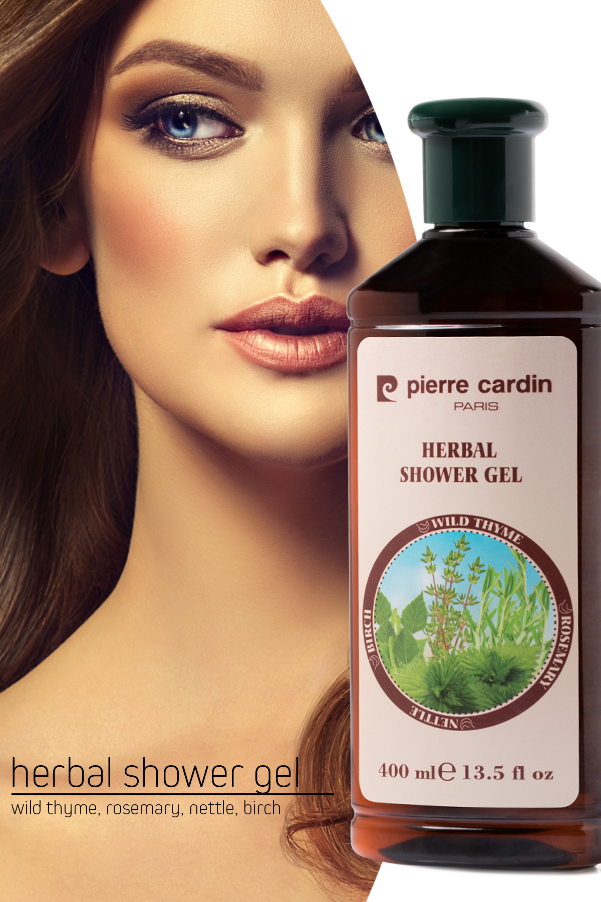 Pierre Cardin Herbal Shower Gel Its special formula, created with a mixture of plant extracts, gently cleans your skin. Pierre Cardin Herbal Shower Gel It gently cleanses your skin with its special formula enriched with Birch, Rosemary, Nettle and Wild Thyme extracts. Feel refreshed with this invigorating shower gel. 400ml