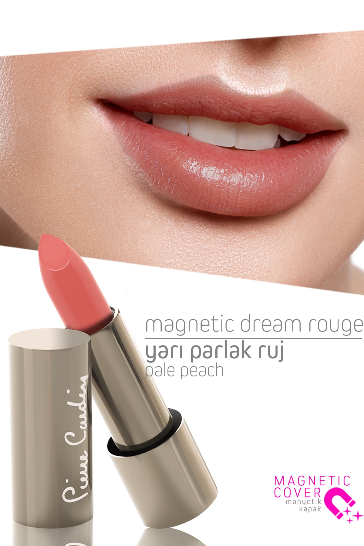 Pierre Cardin Magnetic Dream Lipstick Magnetic Dream Lipstick series is designed to make you feel special, from its packaging to its striking color tones. The creamy and highly pigmented nude, red, fuchsia and coral colors in the series give the lips an irresistible appeal and an extremely comfortable and silky appearance. Product Code: 11260 4 gr