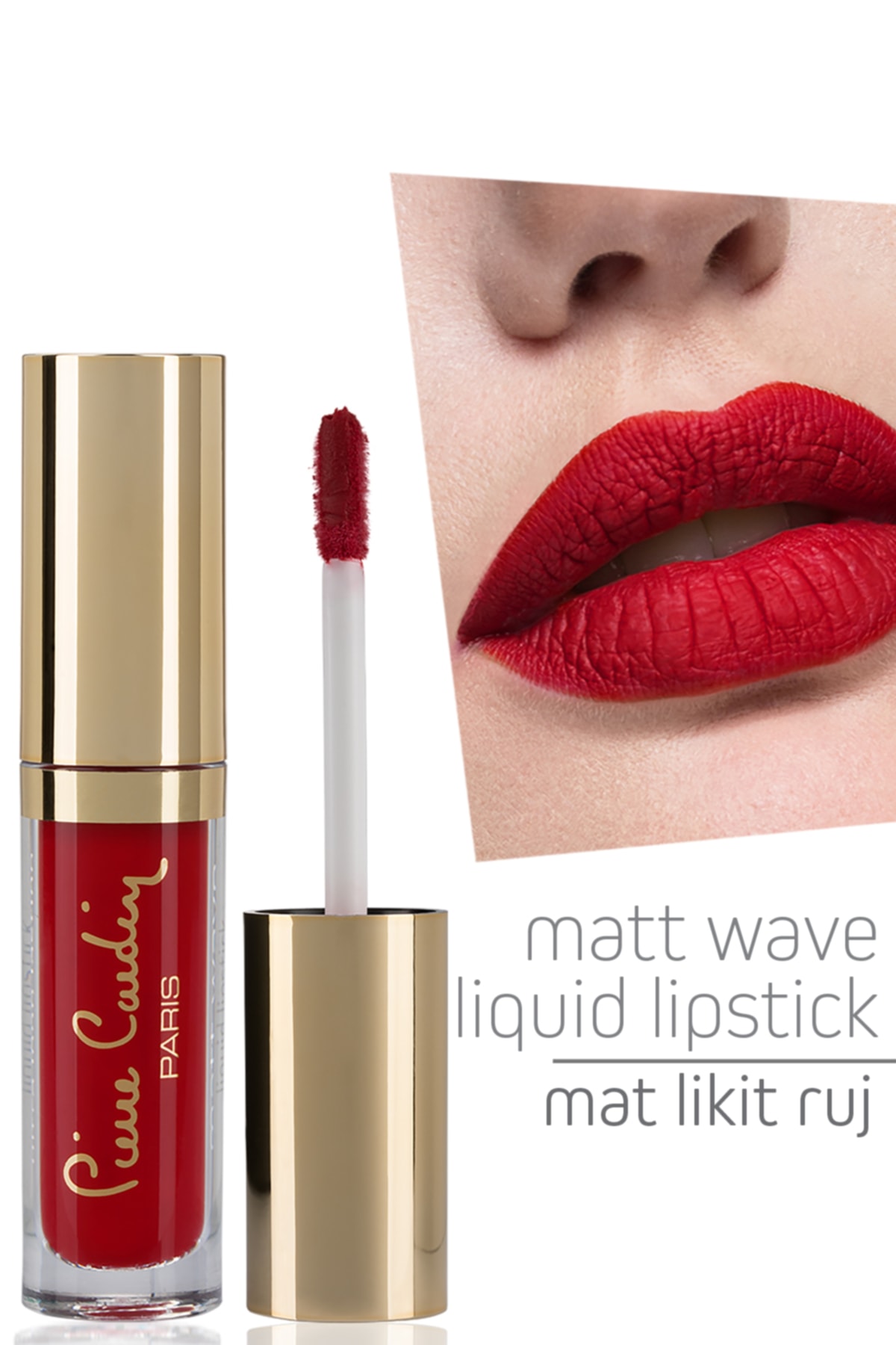 Velvet effect on lips with Pierre Cardin Cosmetic Matt Wave Liquid Lipstick Ultra Long Lasting. Magical lips with Pierre Cardin Matte Liquid Lipstick series with rich pigments. For perfect and flashy matte lips Pierre Cardin Cosmetics touch. You will feel the deepest shade of red on your lips with Pierre Cardin Cosmetic Makeup product Matt Wave Liquid Lipstick. Long-lasting matte appearance 20 different tone options Pierre Cardin Matte liquid lipstick that gives intense color, matte and permanent. It is applied as easily as a gloss with its soft, creamy structure and flexible applicator. It dries to a matte finish shortly after application and maintains its permanence throughout the day without creating a feeling of heaviness. Do not close your lips while waiting for the drying time. It is easily cleaned with Dual Phase Make-up Remover. Dermatologically tested. 5ml