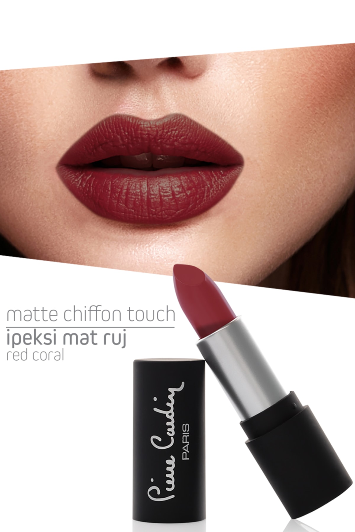 Pierre Cardin Matte Chiffon Touch Lipstick Matte Chiffon Touch Lipstick series is ready to shake you up with iconic reds, vibrant corals, romantic pinks, soft nuds, provocative burgundies and passionate fuchsias. It is an intense, moisturizing and permanent lipstick series enriched with strong pigments. It provides perfect comfort to the lips and a matte appearance with its silky chiffon texture. Product Code: 11199 4 gr