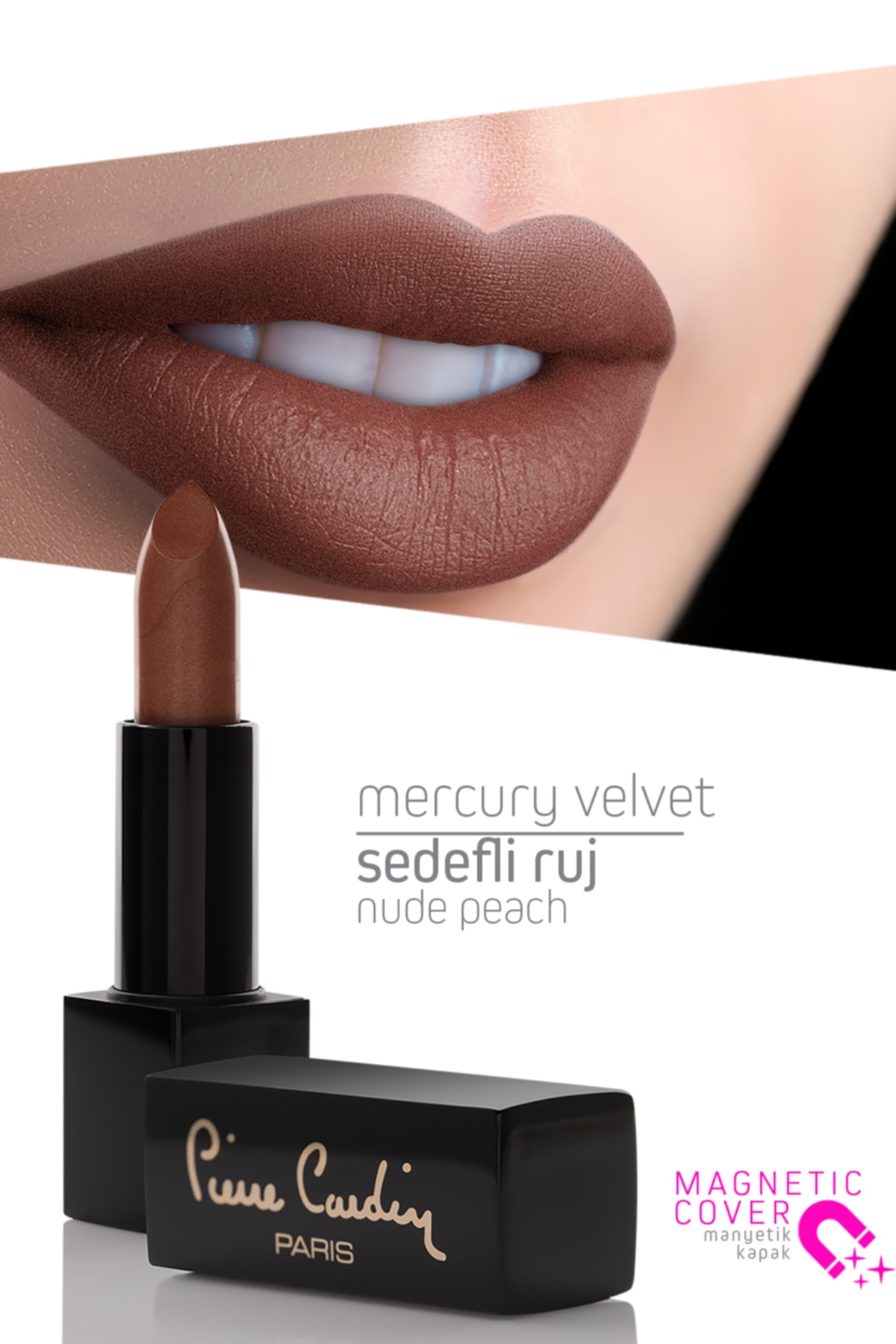 Pierre Cardin Mercury Velvet Lipstick The charm of exciting metallic colors on the lips! Mercury velvet lipstick brings sophisticated and bold colors to your lips with its intensely pigmented, permanent and soft formula. With its 10 magnificent matte metallic colors, it will be with you when you feel most special and powerful. Product Code: 11178 4 gr