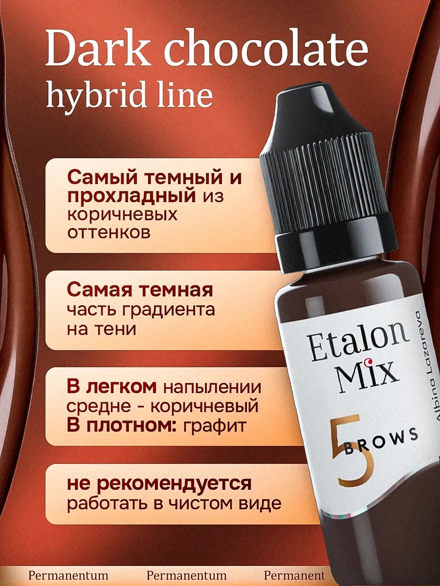 Create stunning permanent makeup with Etalon Mix pigments! Etalon Mix eyebrow pigments guarantee high-quality results, an even tone, and uniform fading over time. Made from high-quality dyes using modern technology, they ensure easy application and distribution. They guarantee an even tone and uniform fading over time. Suitable for eyebrow and eyelid tattooing. Lip and eyebrow rulers from renowned artist Albina Lazareva guarantee vibrant colors and precise contours. All materials undergo strict quality control and comply with GOST standards. They have safety data sheets, all necessary certificates, and declarations. With Etalon Mix, you can easily create your own unique mixes. Etalon Mix pigments have a new packaging design, but their composition and properties remain the same. Etalon Mix eyebrow pigment palette: Etalon Mix #1 Hazelnut: A universal yellow-brown-based color. Used to cover the warm red residue of old tattoos. Etalon Mix #2 Milk Chocolate: The warmest in the palette. The best option for refreshing brows with a slight gray tone. Etalon Mix #3 Cognac: Red-brown-based. For dark skin tones, suitable for dense work. Use to cover green and gray-green old tattoos. Etalon Mix #4 Light Brown: A yellow-based mix. The best option for blondes and gray-haired women. Ideal for covering purple brows in combination with yellow or orange. Etalon Mix #5 Dark Chocolate: The darkest and coolest in the palette. Can be used to darken the color of brows in small quantities on a warm brown shade. Etalon Mix No. 6 Espresso: A red-brown-based mix. Lighter than cognac. The perfect color for brunettes. The brown color does not fade over time. Create perfect eyebrows and eyelids with Etalon Mix pigments! Our pigments are ideal for permanent makeup and tattoo artists in beauty salons and tattoo parlors.