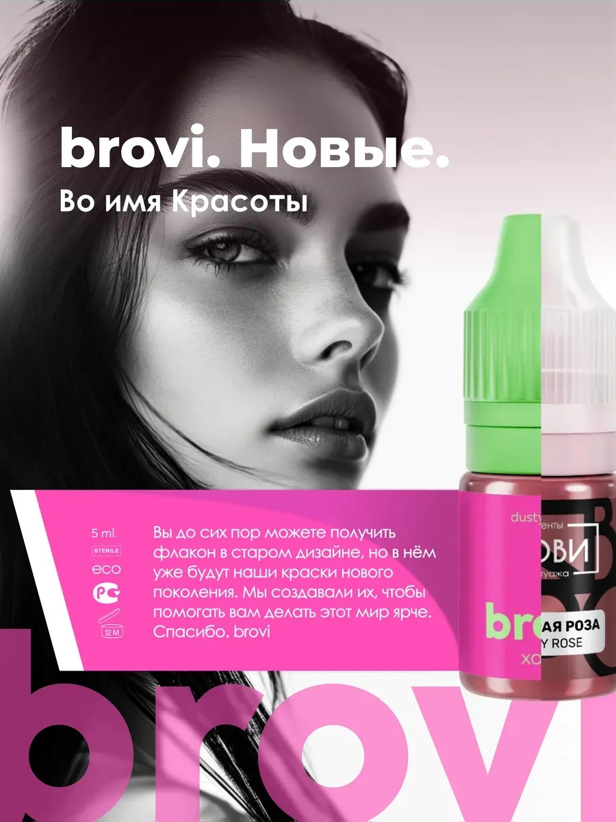 'Пигменты для бровей и губ Брови Pmu, предназначены для перманентного макияжа и татуажа. Они изготовлены из высококачественных красителей и обладают однородной сбалансированной структурой. Краска для губ прекрасно ложится в кожу, обеспечивая отличный результат: ровный цвет и равномерное выцветание со временем. Пигмент для губ поможет подчеркнуть достоинства и скрыть недостатки внешнего вида. Команда Брови учитывает особенности различных типов кожи, не вызывает аллергических реакций и удобна в работе как для опытных мастеров, так и для новичков. Вы сможете легко создавать собственные оттенки, так как пигменты для татуажа прекрасно смешиваются друг с другом. Флаконы тату краски доступны в объемах 5 мл и 15 мл. Палитра включает самые популярные оттенки: пыльная роза, соленая карамель, розовый опал, какао бобы, малиновая тарталетка, красная клубника, сочный арбуз, старый замок. Пигмент для перманента губ Пыльная роза - самый популярный нежно-розовый пигмент , идеален для клиентов, желающих подчеркнуть естественнуюкрасоту губ. В нашем магазине также можно приобрести разбавитель для пигментов и корректор для бровей, а также другие материалы для перманентного макияжа. Используйте краску для тату для создания идеальных губ, выбирая только лучшее — эталон качества! Соблюдая рекомендации производителя по имплантации пигмента в кожу, вы получите максимально естественный результат от нашей профессиональной косметикиот нашей профессиональной косметики - пудровое напыление или имитацию волосков. Как работать: не рекомендуется работать в чистом виде на холодных губах, в таких случаях рекомендуем составлять микс с Соленой карамелью в пропорциях 1:1. Для плотного прокраса можно работать без разбавителя. Для достижения акварельного эффекта рекомендуется добавлять несколько капель разбавителя. Не требует добавления корректоров. Воздействие ремувера: хороший контакт без побочных эффектов.'