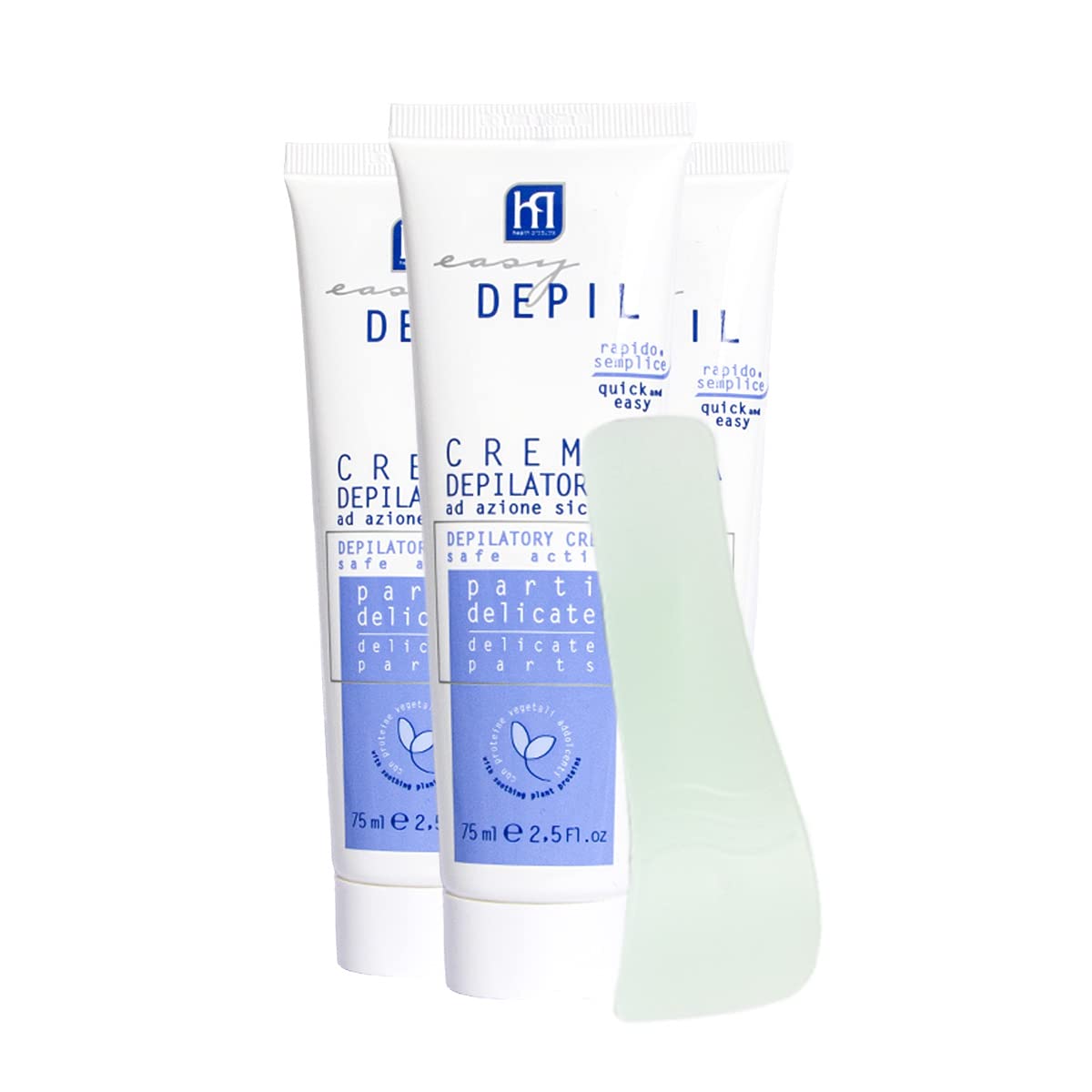 Easy Depil hair removal cream for delicate areas, underarms, inner thighs, and bikini line allows for easy, painless, and effective hair removal by gently and quickly eliminating unwanted hair while fully respecting the skin. Ideal for those who want to remove hair without tearing, it is suitable for all skin types, even particularly dry and sensitive skin prone to bruising or post-hair removal folliculitis. Its exclusive, dermatologically tested formula ensures maximum safety and tolerance. Enriched with soothing plant proteins, it leaves the skin on the body and legs soft, smooth, and velvety for a long time. Ready to use, its very soft texture offers even application and easy removal, and is pleasant to use thanks to its delicate fragrance. Works in 5 minutes. Inside the box is a special, practical, and flexible spatula for easy and convenient application and removal of the cream. 100 Made in Italy product, designed, formulated, and manufactured in Italy at the Betafarma S.p.A. factory in Cesano Boscone (MI). Contents: 1 x 75ml tube of cream and 1 x precision spatula INSTRUCTIONS FOR USE Apply the cream with the curved part of the spatula to completely cover the area to be treated. Leave the cream on for 5 minutes, then remove with the spatula and rinse the treated area thoroughly with water. SAFETY WARNING For external use only. See moreReady to use: Apply with the curved end of the spatula, included in the box, to completely and evenly cover the area to be depilated. Leave the cream on for 5 minutes, then remove with the spatula and rinse the depilated area thoroughly with water. Pleasant fragrance: This depilatory cream for intimate areas and underarms is pleasant to use thanks to a delicate fragrance that ensures no lingering unpleasant odors. Dermatologically tested: For maximum safety and tolerance, even on delicate and sensitive skin, thanks to the presence of soothing, moisturizing, and nourishing plant proteins in the formula. Fast and painless action: Just 5 minutes is enough to effectively, painlessly, and quickly remove unwanted hair from intimate areas and underarms while fully respecting the skin. Depilatory cream for intimate areas and delicate zones: To remove hair from delicate areas such as underarms and the bikini line, leaving skin smooth and soft for a long time. Pack of 3 pieces of depilatory cream for intimate areas and underarms, 75 ml each, at a special price.Easy Depil KIT 3 PIÈCES CRÈME ÉPILATOIRE PARTIES DELICATES DE 7 ml Épilation parties intimes, Aisselles, Aisselles, AININE Rapide, facile à utiliser, efficace, sûre. Peau lisse avec protéines végétales adoucissantes.DESCRIPTION DU PRODUIT DESCRIPTION DU PRODUIT La crème épilatoire parties délicates, aisselles, entrejambe, zone de bikini Easy Depil permet une épilation facile, indolore et efficace en éliminant de manière délicate et rapide les poils superflus dans le respect total de la peau. Idéal pour ceux qui souhaitent enlever les poils en évitant les traumatismes de déchirure, il convient à tous les types de peaux même celles particulièrement sèches et les plus sensibles, sujettes aux hématomes ou aux folliculite post-épilation. Mérite d'une formule exclusive testée dermatologiquement, pour une sécurité et une tolérance maximales, enrichie en protéines végétales adoucissantes qui laisse la peau du corps et des jambes douce, lisse et veloutée pendant longtemps. Prête à l'emploi, sa texture très douce offre une application homogène et un retrait facile et est agréable à utiliser grâce à un parfum délicat. Agit en 5 minutes. À l'intérieur de la boîte la spatule spéciale pratique et flexible, pour appliquer et enlever la crème de manière facile et facile. Produit 100 fabriqué en Italie conçu, formulé et fabriqué en Italie dans l'usine de Betafarma S.p.A à Cesano Boscone (MI). Contenu : 1 tube de crème de 75 ml et 1 spatule de précision MODE D'EMPLOI Appliquer la crème avec la partie incurvée de la spatule pour couvrir complètement l'endroit à enlever. Laisser agir la crème pendant 5 minutes, puis retirer avec la spatule et rincer soigneusement la zone retirée avec de l'eau. AVERTISSEMENT DE SÉCURITÉ Usage extérieur uniquement. Voir plusPrêt à l'emploi : s'applique avec la partie incurvée de la spatule, présente dans la boîte, pour couvrir complètement uniformément la zone à épiler. Laisser agir la crème pendant 5 minutes, puis retirer avec la spatule et rincer abondamment la zone épilée avec de l'eau. Parfum agréable : cette crème dépilatoire pour parties intimes et aisselles est agréable à utiliser grâce à un parfum délicat qui assure l'absence de mauvaises odeurs persistantes. Testé dermatologiquement : pour une sécurité maximale et une tolérance même sur les peaux délicates et sensibles, grâce à la présence en formule de protéines végétales à action apaisante, hydratante et nutritive. Action rapide et indolore : 5 minutes suffisent pour enlever les poils superflus des parties intimes et aisselles de manière efficace, indolore et rapide dans le respect total de la peau. Crème dépilatoire parties intimes et zones délicates : pour enlever les poils des zones délicates comme les aisselles et la zone du bikini en laissant la peau lisse et douce pendant longtemps. Lot de 3 pièces de crème dépilatoire parties intimes et aisselles de 75 ml l'une à un prix spécial.