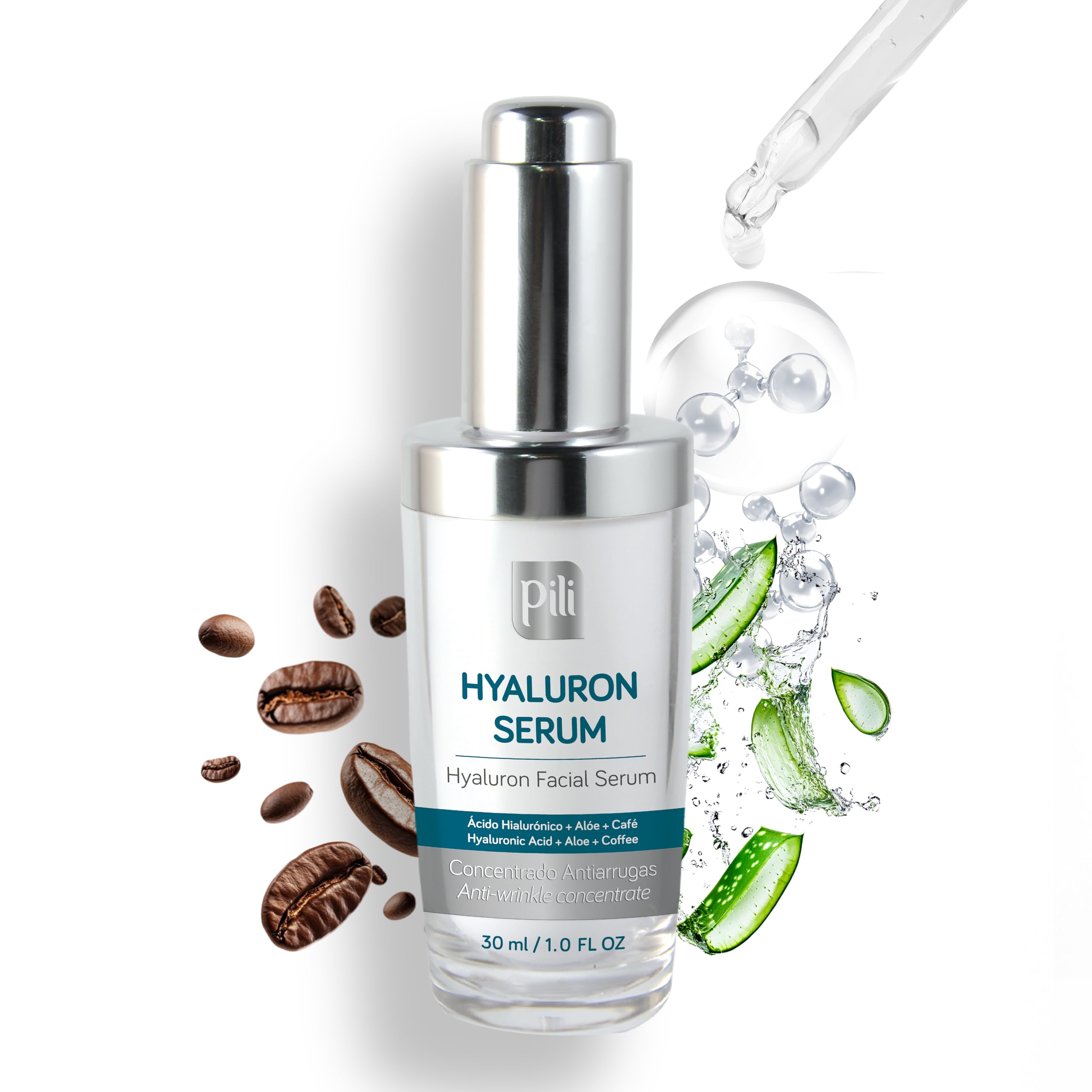 Pili Hyaluronic Serum | Concentrated Hyaluronic Acid Serum with Aloe Vera and Coffee extract | Best Anti- Aging Anti-Wrinkle formula for Face - Suero Concentrado de Acido Hialuronico| 1 oz