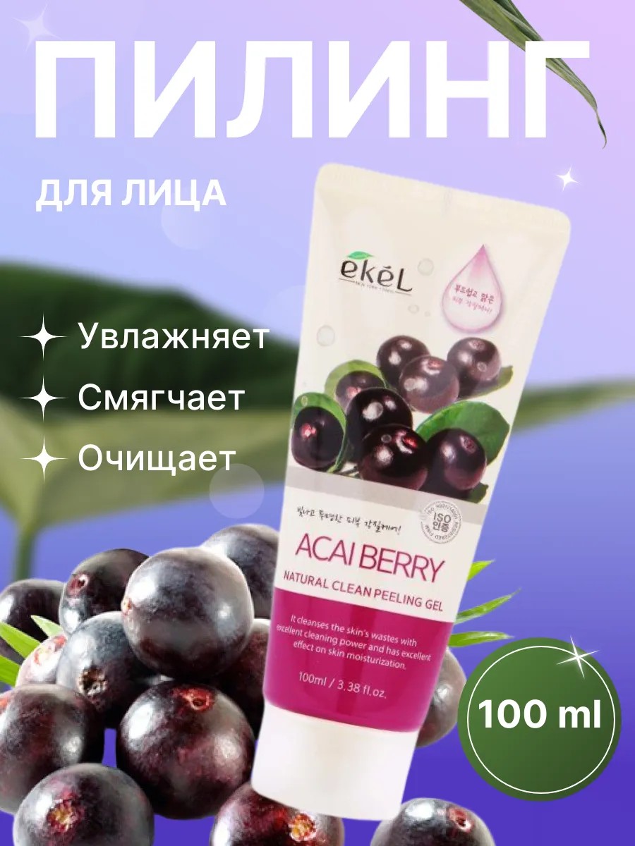 Пилинг-скатка с экстрактом ягод асаи Ekel Natural Clean peeling gel Acai Berry 100мл мягко и эффективно отшелушивает омертвевшие клетки кожи лица и шеи. Глубоко очищает поры. Выравнивает поверхность кожи.