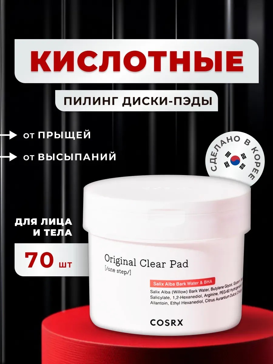 С кислотными пилинг пэдами для лица CosRX One Step Clear Pad (Корея) вы забудете о проблемах с кожей лица - они помогут избавиться от излишков кожного жира, уменьшат поры и сделают вашу кожу более ровной и ухоженной. Эффективная пропитка дисков это эссенция на основе салициловой и ВНА-кислоты и экстракта коры белой ивы. За счет этих компонентов средство контролирует гидро-липидный баланс кожи, устраняет загрязнения из пор, решает проблемы с прыщами, угревой сыпью и черными точками. Отшелушивающие подушечки CosRX удобны в использовании - достаточно протереть лицо диском, чтобы кожа стала гладкой и сияющей. Они мягко, но эффективно удаляют ороговевшие клетки кожи, предотвращая появление воспалений. Благодаря удобному формату падов, вы можете использовать их в любое время, в любом месте, не тратя много времени на уход. Для достижения максимального эффекта от пилинг-пэдов CosRX рекомендуется протирать лицо очищающим диском утром и вечером после очищения кожи. После этого можно продолжить уход обычными средствами: тоником, сывороткой, увлажняющим кремом. Не забывайте использовать средства с SPF, чтобы защитить кожу от вредного воздействия ультрафиолета. Попробуйте пилинг пэды CosRX One Step Clear Pad сегодня и вы увидите результаты уже после первого применения. Доверьтесь корейским косметическим продуктам и получите идеальную кожу лица без проблем!