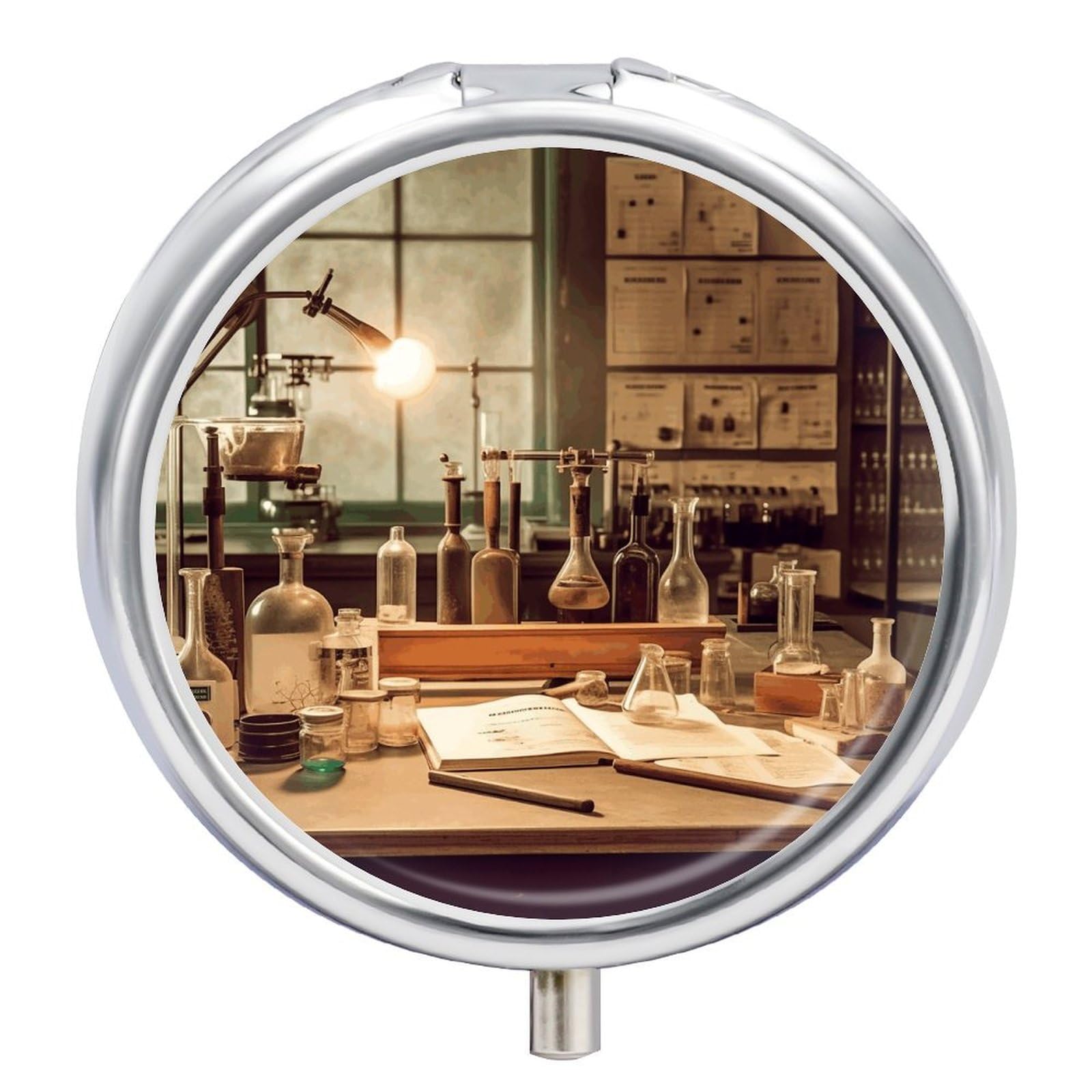 This Vintage Chemistry Lab round metal pill box fits perfectly in your pocket, purse, and is great for travel, the pill box button opens, and the easy-to-open design makes it a great travel accessory. 1.Perfect Gift: daily pill box With internal dividers and unique bright patterns, it is a unique gift for men or women. 2.Decorative Pill Box: The beautiful pill box has beautiful patterns that make the mood more cheerful. Not only as a practical pill box, but also as a great decorative piece. 3.Portable: The pill box is a stylish and practical solution for carrying pills on the road. With three independent compartments, this round pill box can be convenient for you to use all day long. 4.Applicable Scenarios:This pill organizer is a fun and practical gift for anyone who needs it. 5.Washing Instructions: the small pill case for purse Not washable, wipe clean is optionalIntimate service:We are committed to providing you with the best service.Your demand and recognized is our continuous development increased power! If there is any problem with your purchase, please feel free to contact us, we will try our best to help you. Exquisite Gift:Travel Pill Organizer features brilliant illustration,Brilliant color,fashion cute style. It is very suitable for Father's Day, Mother's Day,Thanksgiving Day,Valentine's Day,Halloween,Christmas and birthday gifts,to show your care and love. Widely Used:portable pill box Reusable,can be applied to store pills,vitamins,medicines,first aid,spice,candies, cosmetics,gels, creams,jewelry,ear buds,ear plugs,etc. or other small items,ideal for travel,work,camping and other outdoor activities. Portable Size:pill box small measures 1.97 x 1.97 x 0.8 inch,There are three separate compartments,it is compact in size and light in weight,has a big capacity to hold 20+ pieces pills,for easy carrying. Perfect to put it in your purse,travel bag,briefcase or the back pocket of your jeans for daily meds. Premium Zinc Alloy:Our Vintage Chemistry Lab cute pill box is made of quality metal construction with plastic inside divider. compared with plastic pill boxes,more robust,coming with a long service life. mini pill case is compact and delicate in appearance,smooth in texture,and has a reliable spring latch to keep your meds safely inside.