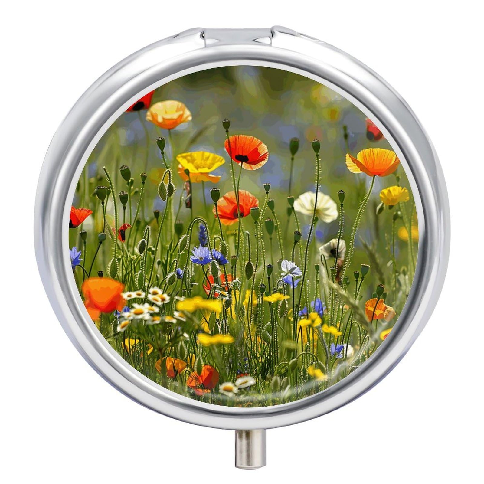 This Wild Flowers And Grass round metal pill box fits perfectly in your pocket, purse, and is great for travel, the pill box button opens, and the easy-to-open design makes it a great travel accessory. 1.Perfect Gift: daily pill box With internal dividers and unique bright patterns, it is a unique gift for men or women. 2.Decorative Pill Box: The beautiful pill box has beautiful patterns that make the mood more cheerful. Not only as a practical pill box, but also as a great decorative piece. 3.Portable: The pill box is a stylish and practical solution for carrying pills on the road. With three independent compartments, this round pill box can be convenient for you to use all day long. 4.Applicable Scenarios:This pill organizer is a fun and practical gift for anyone who needs it. 5.Washing Instructions: the small pill case for purse Not washable, wipe clean is optionalIntimate service:We are committed to providing you with the best service.Your demand and recognized is our continuous development increased power! If there is any problem with your purchase, please feel free to contact us, we will try our best to help you. Exquisite Gift:Travel Pill Organizer features brilliant illustration,Brilliant color,fashion cute style. It is very suitable for Father's Day, Mother's Day,Thanksgiving Day,Valentine's Day,Halloween,Christmas and birthday gifts,to show your care and love. Widely Used:portable pill box Reusable,can be applied to store pills,vitamins,medicines,first aid,spice,candies, cosmetics,gels, creams,jewelry,ear buds,ear plugs,etc. or other small items,ideal for travel,work,camping and other outdoor activities. Portable Size:pill box small measures 1.97 x 1.97 x 0.8 inch,There are three separate compartments,it is compact in size and light in weight,has a big capacity to hold 20+ pieces pills,for easy carrying. Perfect to put it in your purse,travel bag,briefcase or the back pocket of your jeans for daily meds. Premium Zinc Alloy:Our Wild Flowers And Grass cute pill box is made of quality metal construction with plastic inside divider. compared with plastic pill boxes,more robust,coming with a long service life. mini pill case is compact and delicate in appearance,smooth in texture,and has a reliable spring latch to keep your meds safely inside.