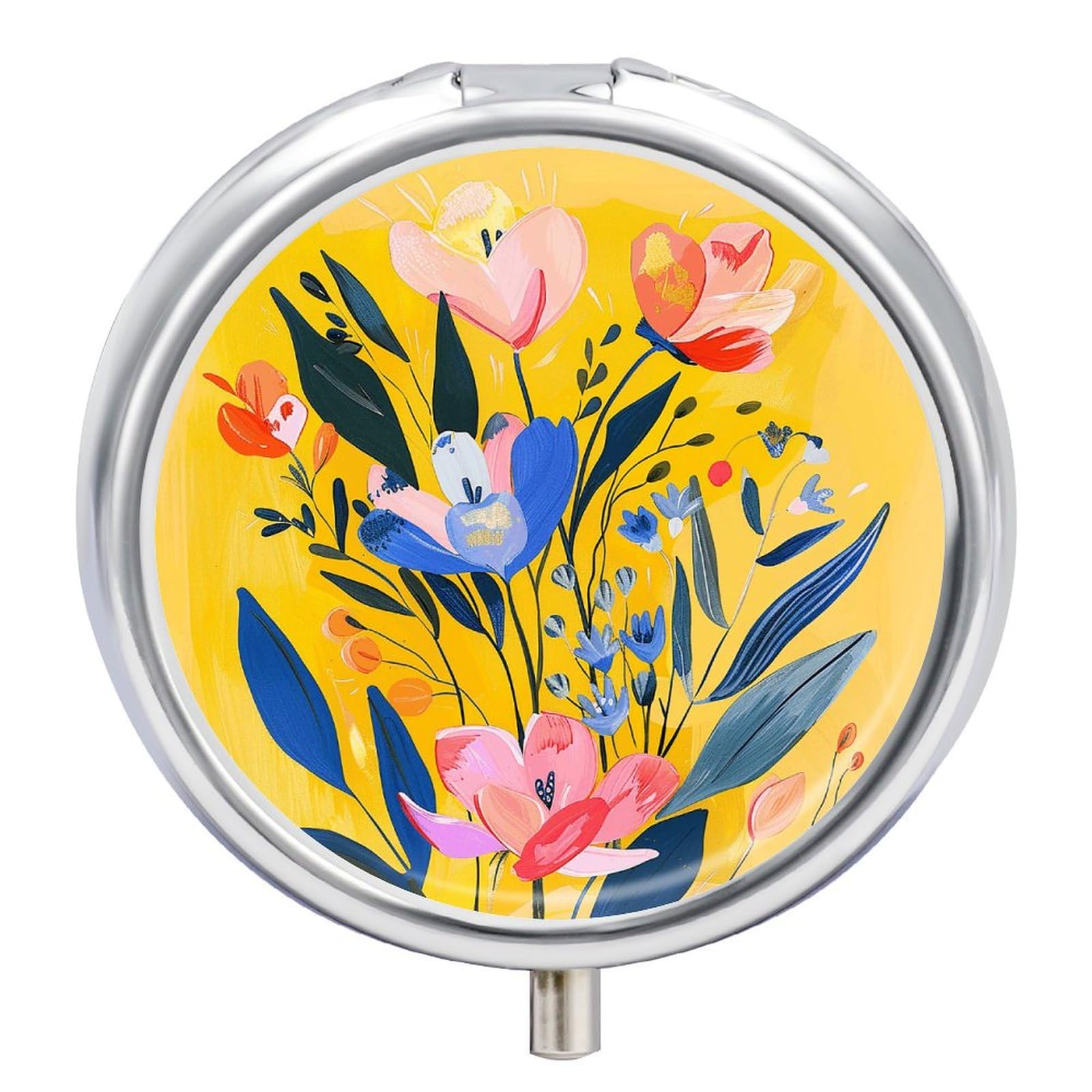 This With And Blue Pattern round metal pill box fits perfectly in your pocket, purse, and is great for travel, the pill box button opens, and the easy-to-open design makes it a great travel accessory. 1.Perfect Gift: daily pill box With internal dividers and unique bright patterns, it is a unique gift for men or women. 2.Decorative Pill Box: The beautiful pill box has beautiful patterns that make the mood more cheerful. Not only as a practical pill box, but also as a great decorative piece. 3.Portable: The pill box is a stylish and practical solution for carrying pills on the road. With three independent compartments, this round pill box can be convenient for you to use all day long. 4.Applicable Scenarios:This pill organizer is a fun and practical gift for anyone who needs it. 5.Washing Instructions: the small pill case for purse Not washable, wipe clean is optionalIntimate service:We are committed to providing you with the best service.Your demand and recognized is our continuous development increased power! If there is any problem with your purchase, please feel free to contact us, we will try our best to help you. Exquisite Gift:Travel Pill Organizer features brilliant illustration,Brilliant color,fashion cute style. It is very suitable for Father's Day, Mother's Day,Thanksgiving Day,Valentine's Day,Halloween,Christmas and birthday gifts,to show your care and love. Widely Used:portable pill box Reusable,can be applied to store pills,vitamins,medicines,first aid,spice,candies, cosmetics,gels, creams,jewelry,ear buds,ear plugs,etc. or other small items,ideal for travel,work,camping and other outdoor activities. Portable Size:pill box small measures 1.97 x 1.97 x 0.8 inch,There are three separate compartments,it is compact in size and light in weight,has a big capacity to hold 20+ pieces pills,for easy carrying. Perfect to put it in your purse,travel bag,briefcase or the back pocket of your jeans for daily meds. Premium Zinc Alloy:Our With And Blue Pattern cute pill box is made of quality metal construction with plastic inside divider. compared with plastic pill boxes,more robust,coming with a long service life. mini pill case is compact and delicate in appearance,smooth in texture,and has a reliable spring latch to keep your meds safely inside.