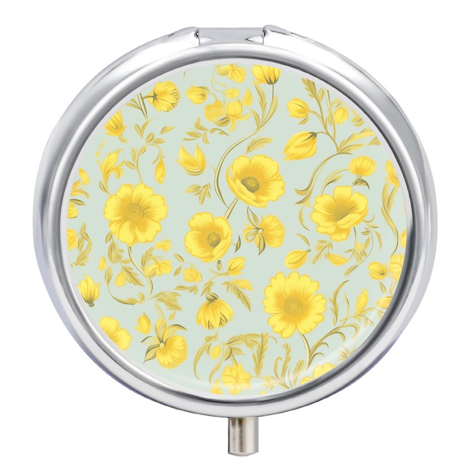 This Yellow Flower round metal pill box fits perfectly in your pocket, purse, and is great for travel, the pill box button opens, and the easy-to-open design makes it a great travel accessory. 1.Perfect Gift: daily pill box With internal dividers and unique bright patterns, it is a unique gift for men or women. 2.Decorative Pill Box: The beautiful pill box has beautiful patterns that make the mood more cheerful. Not only as a practical pill box, but also as a great decorative piece. 3.Portable: The pill box is a stylish and practical solution for carrying pills on the road. With three independent compartments, this round pill box can be convenient for you to use all day long. 4.Applicable Scenarios:This pill organizer is a fun and practical gift for anyone who needs it. 5.Washing Instructions: the small pill case for purse Not washable, wipe clean is optionalIntimate service:We are committed to providing you with the best service.Your demand and recognized is our continuous development increased power! If there is any problem with your purchase, please feel free to contact us, we will try our best to help you. Exquisite Gift:Travel Pill Organizer features brilliant illustration,Brilliant color,fashion cute style. It is very suitable for Father's Day, Mother's Day,Thanksgiving Day,Valentine's Day,Halloween,Christmas and birthday gifts,to show your care and love. Widely Used:portable pill box Reusable,can be applied to store pills,vitamins,medicines,first aid,spice,candies, cosmetics,gels, creams,jewelry,ear buds,ear plugs,etc. or other small items,ideal for travel,work,camping and other outdoor activities. Portable Size:pill box small measures 1.97 x 1.97 x 0.8 inch,There are three separate compartments,it is compact in size and light in weight,has a big capacity to hold 20+ pieces pills,for easy carrying. Perfect to put it in your purse,travel bag,briefcase or the back pocket of your jeans for daily meds. Premium Zinc Alloy:Our Yellow Flower cute pill box is made of quality metal construction with plastic inside divider. compared with plastic pill boxes,more robust,coming with a long service life. mini pill case is compact and delicate in appearance,smooth in texture,and has a reliable spring latch to keep your meds safely inside.