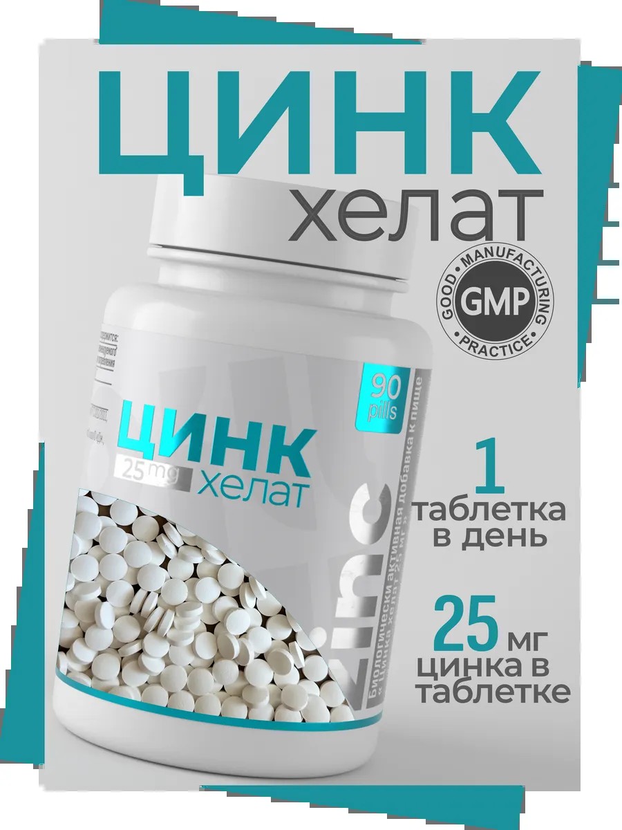 | Комплектация | Цинк хелат 90 таблеток; пластиковая банка |