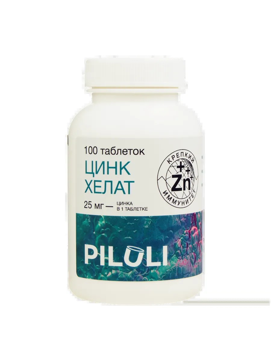PILULI Цинка хелат 25 мг антиоксидант для иммунитета, кожи, волос и ногтей таблетки массой 600 мг 100 шт