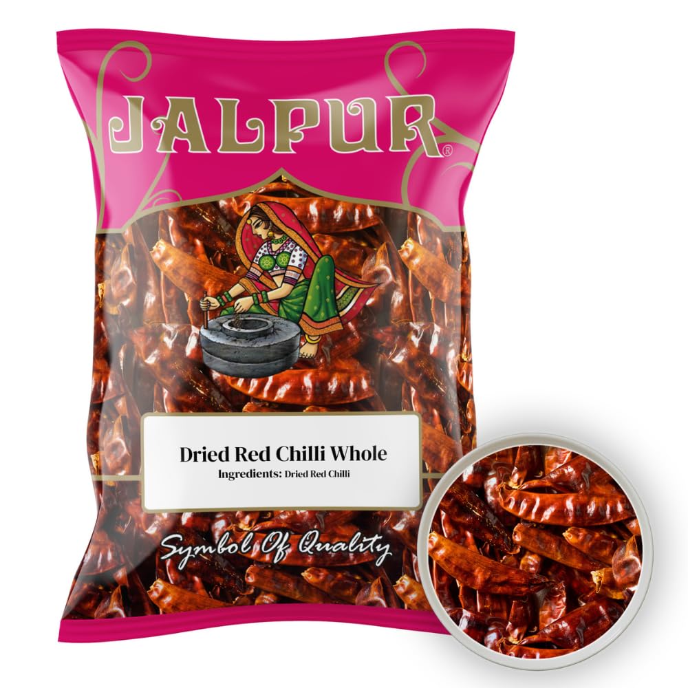 : Packaged on the day of shipment to preserve freshness. - - - Jalpur Brand Product - - - - Whole Kashmiri Red Chilies - - - - Whole Spice - - - - Used to spice curries and stews - - - - 100g Pack - - - PLEASE SEE BELOW FOR ENGLISH TITLE AND DESCRIPTION - Whole Red Chili 100g ------------------------- No Indian palate is accustomed to bland food. We need chilies to spice up any savory dish. So, if you want less spice with that perfect red color to your dish, Kashmiri Chili is the option. These chilies are smaller and rounder and less pungent but give a very vibrant red color to a dish. Allergen Advice (Jalpur products are packed and produced in a mill that handles wheat, gluten, nuts, peanuts, mustard, sesame and soya)-All products will be shipped from the UK Ingredients Dried Red Chillies