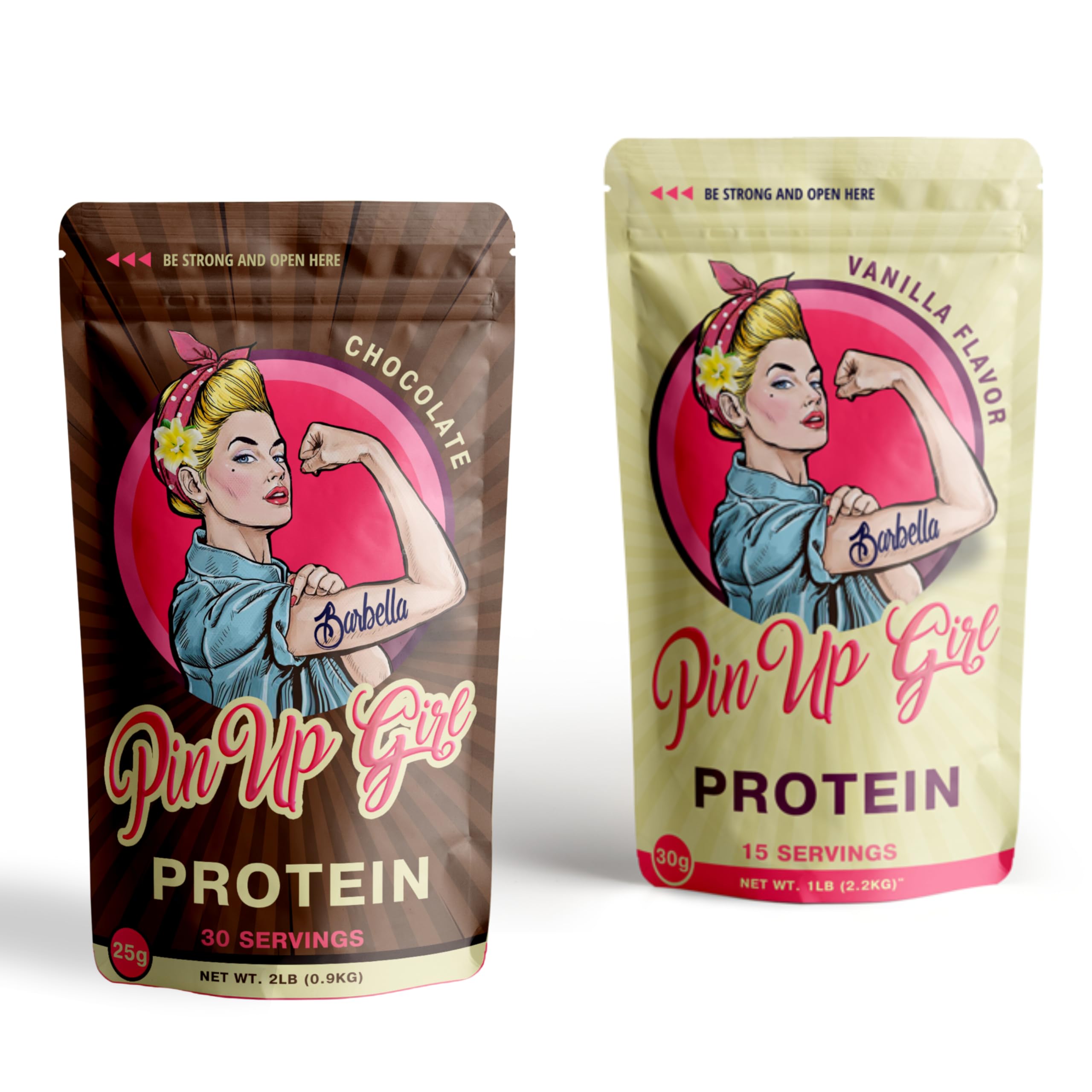 Pin Up Girl Whey Protein Isolate Powder Bundle | 25g Protein Per Serving | Premium Diet-Freindly Formula for Women | Low Carb Fat Free No Added Sugar | Vanilla & Chocolate