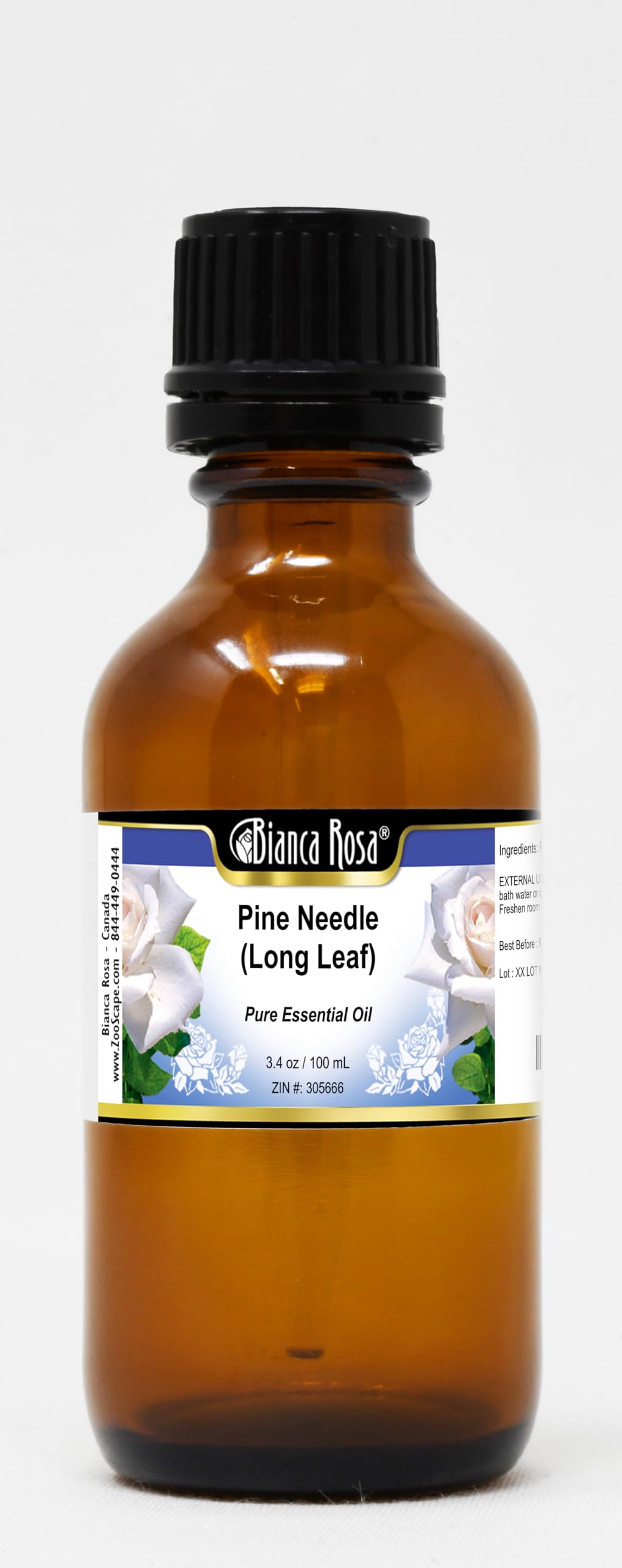 Convenient Liquid format. Size: 3.40 oz. Manufacturer: Bianca Rosa. No fillers. Pine Needle (Long Leaf) Pure Essential Oil (3.40 oz, ZIN: 305666).