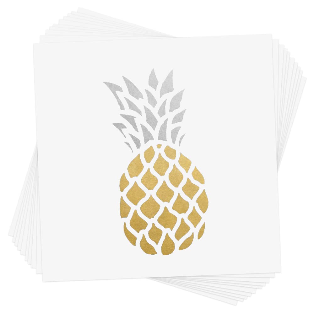 Pineapple set of 10 assorted premium waterproof metallic gold & silver tropical temporary foil Flash Tattoos temporary tattoo beach party favor party supplies waterproof tattoo tropical tattoo