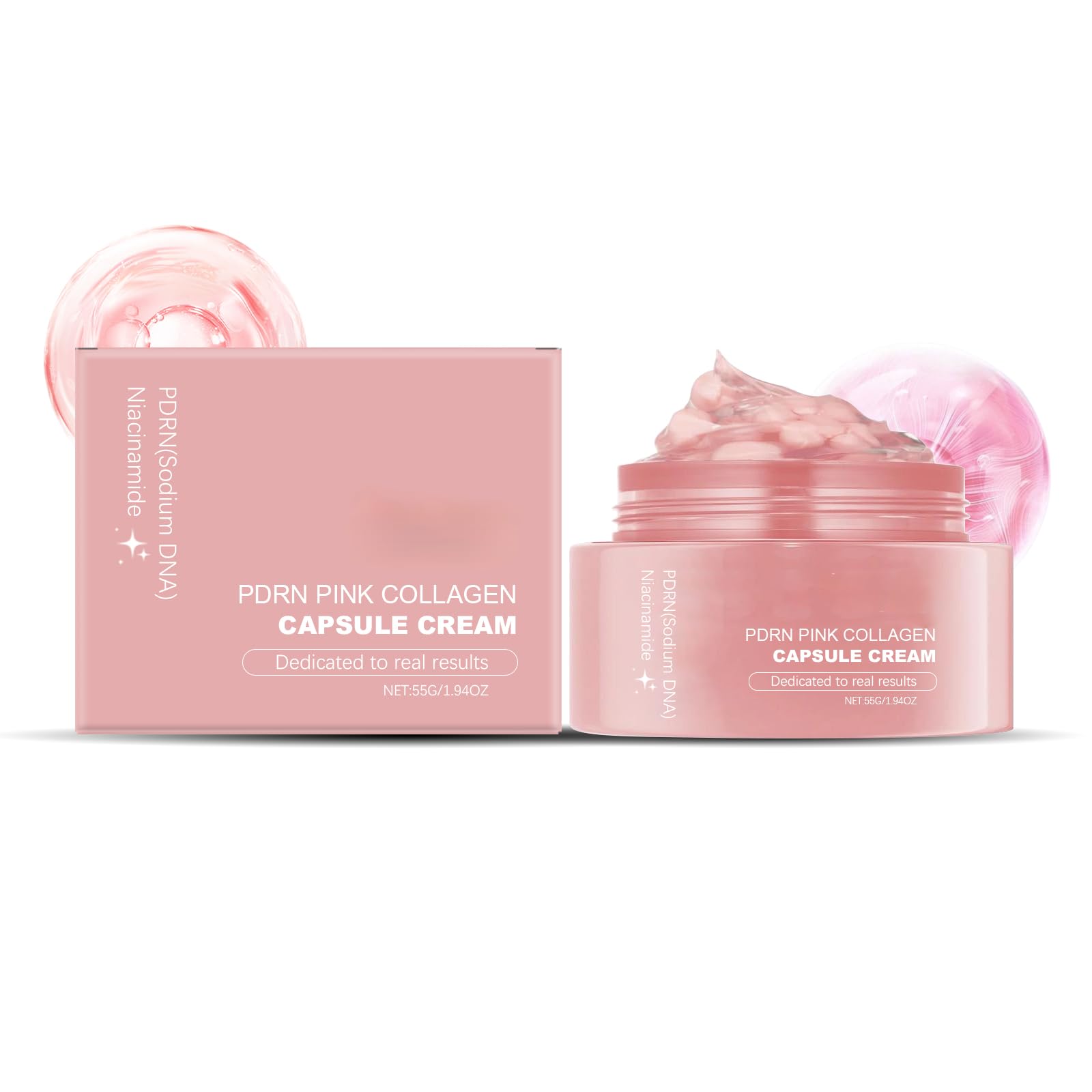 PingJuXuan PDRN Pink Collagen Capsule Cream Lightweight Moisturizing Face Cream with Pearl Extract 55G/1.94oz