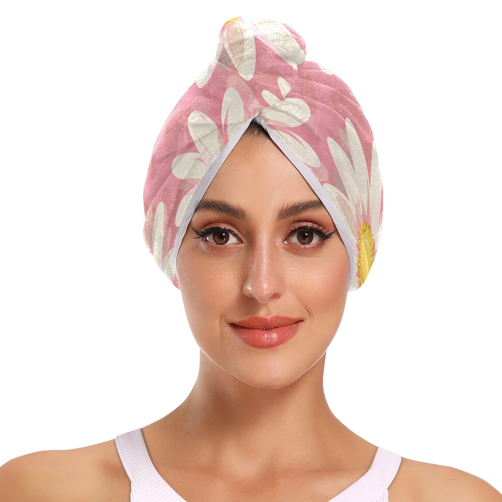 Pink Daisy Hair Towel 2 Pack Super Absorbent Hair Drying Towel Quick Dry Hair Turbans Head Towel with Button Twisty Wrap for Women Girls